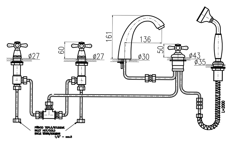 Смеситель на борт ванны Rav Slezak Morava MK176.5 монолитный, с душевым гарнитуром, изготовлен из высококачественной латуни, которая исключает какую-либо коррозию. Латунные рукоятки. Керамическиe кран буксы, производство Германия. Керамический переключатель душ/излив. Металлический шланг с двойной оплеткой, с пружиной, которая обеспечивает лёгкое возвращение шланга в держатель. Длина шланга 2000 мм. Латунная душевая лейка. В комплекте смеситель, шланг, душевая лейка, гибкая подводка и комплект крепления.