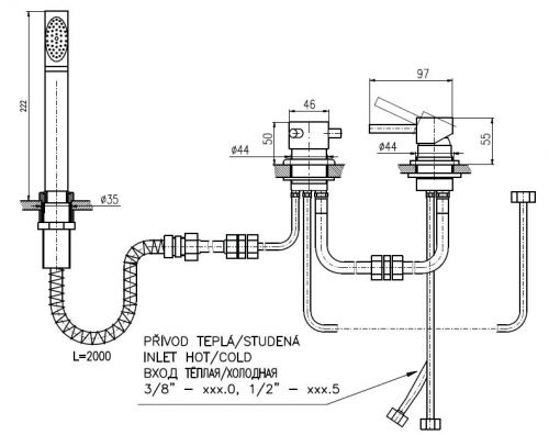 Rav Slezak Seina SE975.5PZ каскадный смеситель для ванны. Врезной на 3 отверстия. В состав комплекта входит душевой шланг с пружиной и переключатель керамический MD0448.5. Монтаж на борт ванны и плиточный бортик.