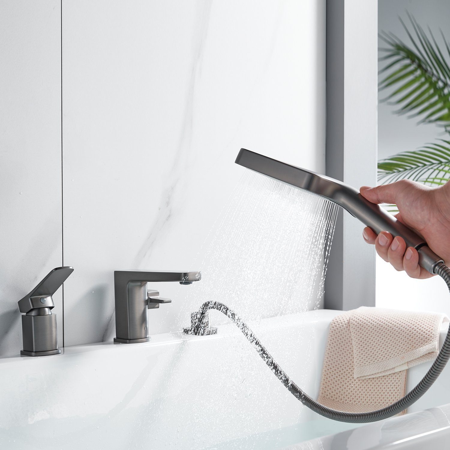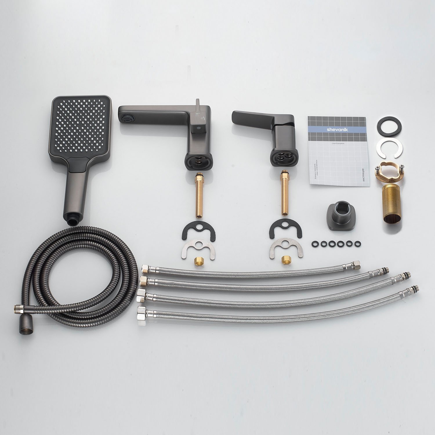 смеситель,излив с переключателем потоков, лейка, шланг, держатель лейки, гибкая подводка, комплект креплений