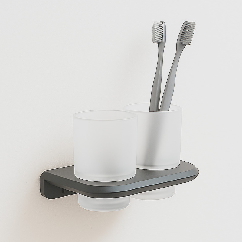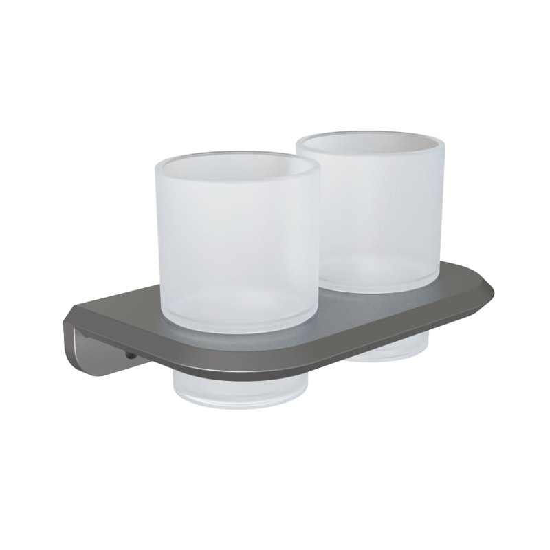 Двойной подвесной стакан SPACE с отделкой «оружейная сталь» и матовым стеклом — стильный и практичный аксессуар. Настенный монтаж делает интерьер аккуратным, материалы ZAMAK + SUS-201 долговечны.