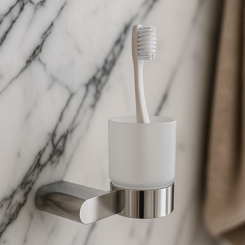 Подвесной стакан BLISS в хроме с матовым стеклом и корпусом из нержавеющей стали SUS 304 — сочетание стиля и практичности. Настенное крепление экономит пространство, антиследовое покрытие облегчает уход.