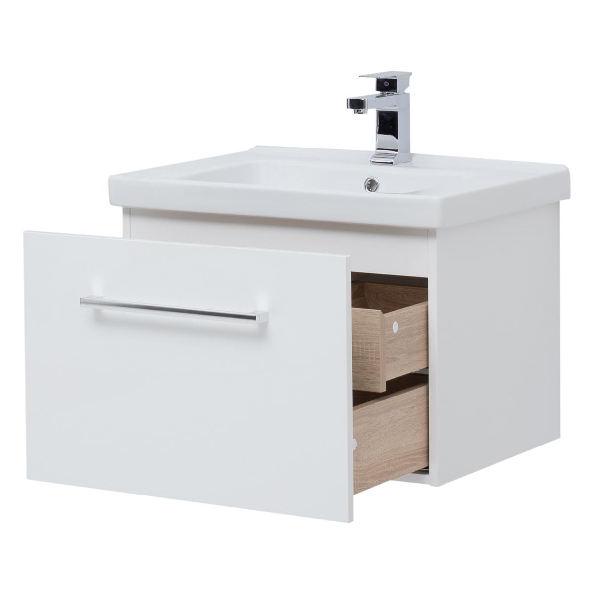 Тумба под раковину подвесная Dreja Big Inn 65 см, белый. Фурнитура: Hettich. Компоновка: 1 ящик + выдвижной внутренний ящик. Дополнительные функции: встроенный органайзер в верхнем ящике. Монтаж: подвесной.