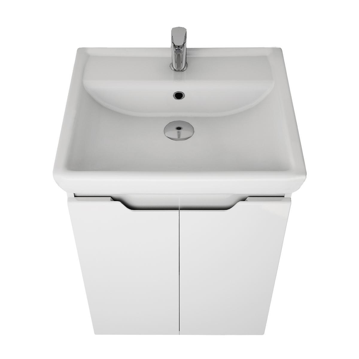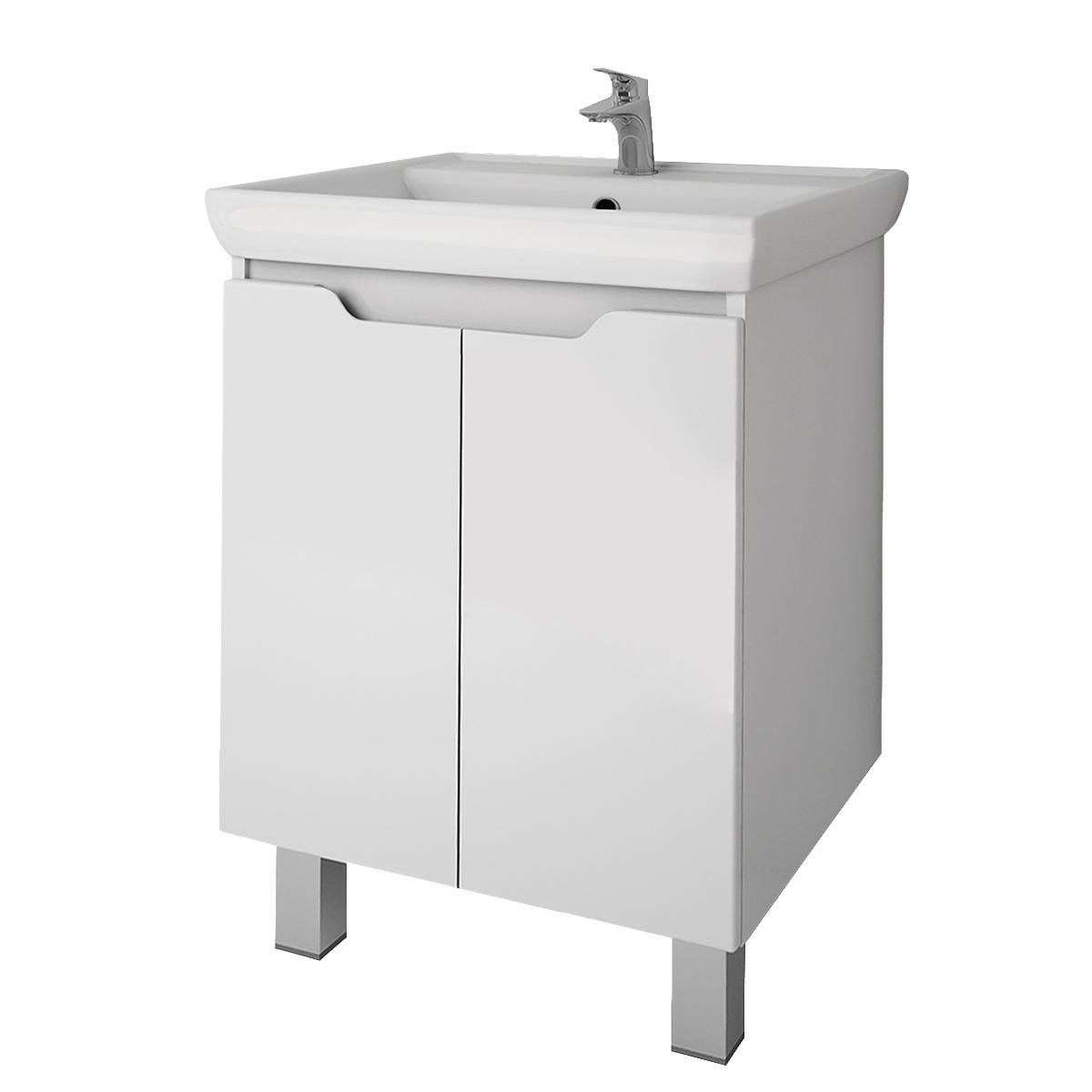 Тумба под раковину подвесная Dreja Q Plus (D) 55 см, белый. Фурнитура: Hettich. Компоновка: 2 дверцы, 1 полка. Монтаж: подвесной/напольный. Для монтажа необходимо закрепить тумбу к стене и использовать входящие в комплект поставки опоры.