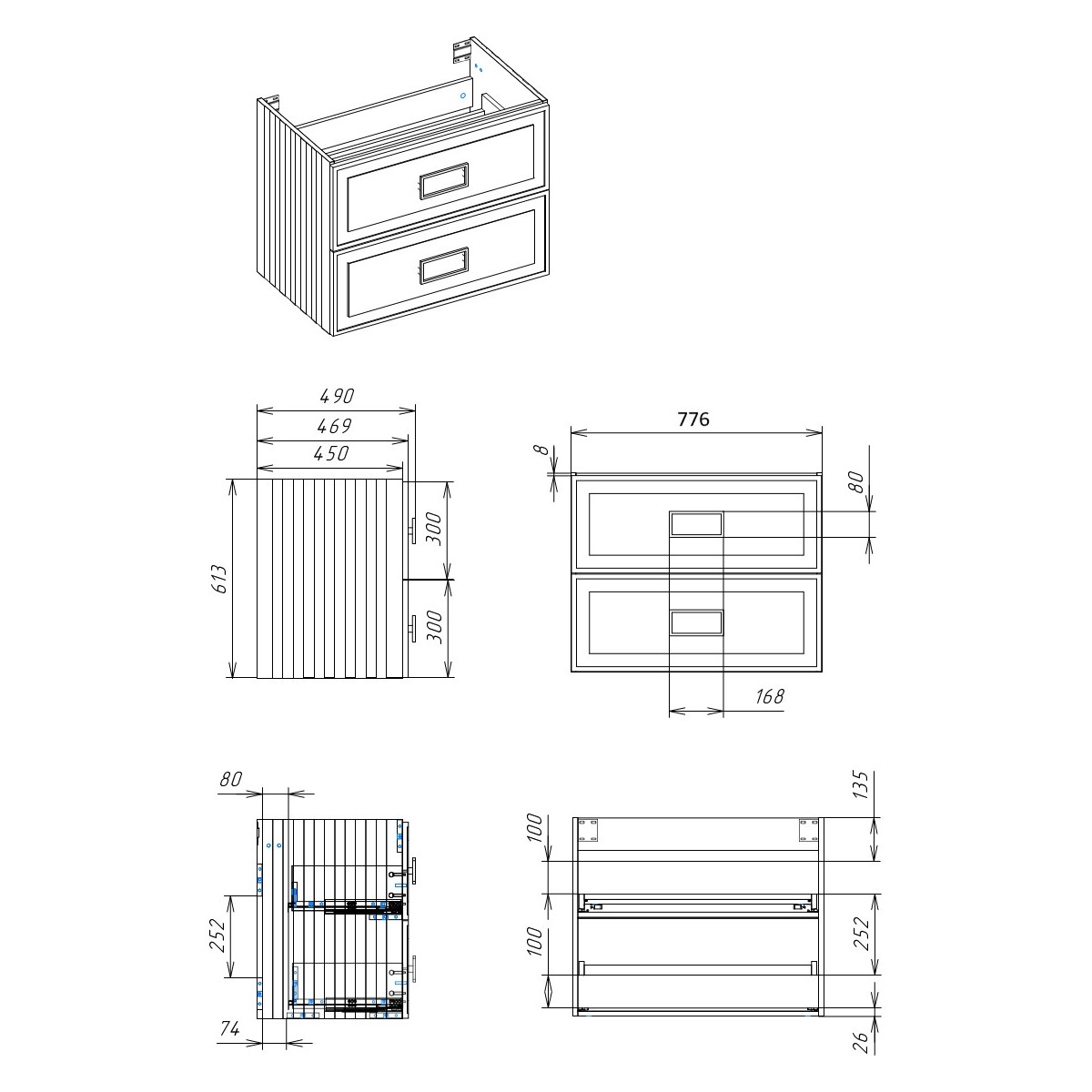 КомплектацияТумба, ручки (цвет на выбор), сифон Prevex, набор для монтажа ( монтажная планка, дюбеля, саморезы)