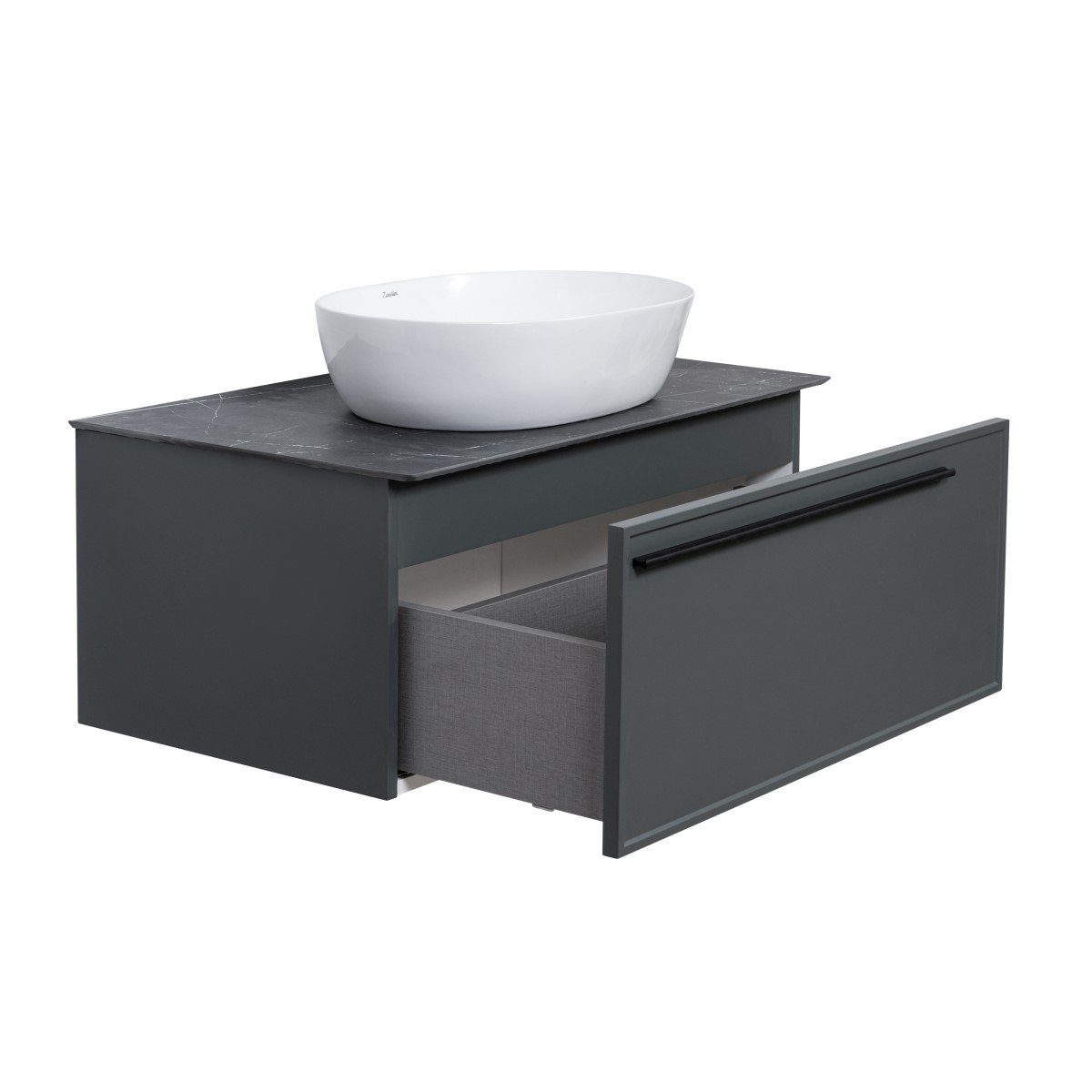 Подвесная тумба La Fenice Elba FNC-01-ELB-G-80 обладает рядом неоспоримых преимуществ. Тумбу можно оснастить встраиваемой раковиной (арт. CU.NN.80), либо же приобрести столешницу в подходящем цветовом решении (арт. FNC-03-PL01-80, FNC-03-VS03-80) и установить на неё раковину-чашу. За счет входящего в комплект сифона Prevex, тумба обладает полноценным ящиком для хранения (без выреза). Ящик выполнен в фантазийной цветовой гамме "Лён антрацит". Тумба оснащена скрытыми доводчиками плавного закрывания частичного выдвижения Samet (Турция) и подвесным регулируемым механизмом Camar (Италия). Фасад и корпус тумбы покрыты краской и матовым лаком, что является надёжной защитой от влаги. Прекрасным и функциональным дополнением к тумбе станет пенал La Fenice Elba серо-зеленого цвета FNC-05-ELB-G-30