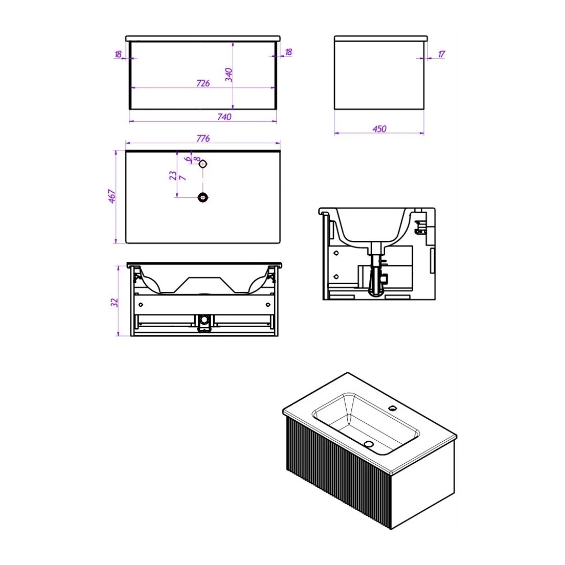 КомплектацияТумба, набор для монтажа ( монтажная планка, дюбеля, саморезы)