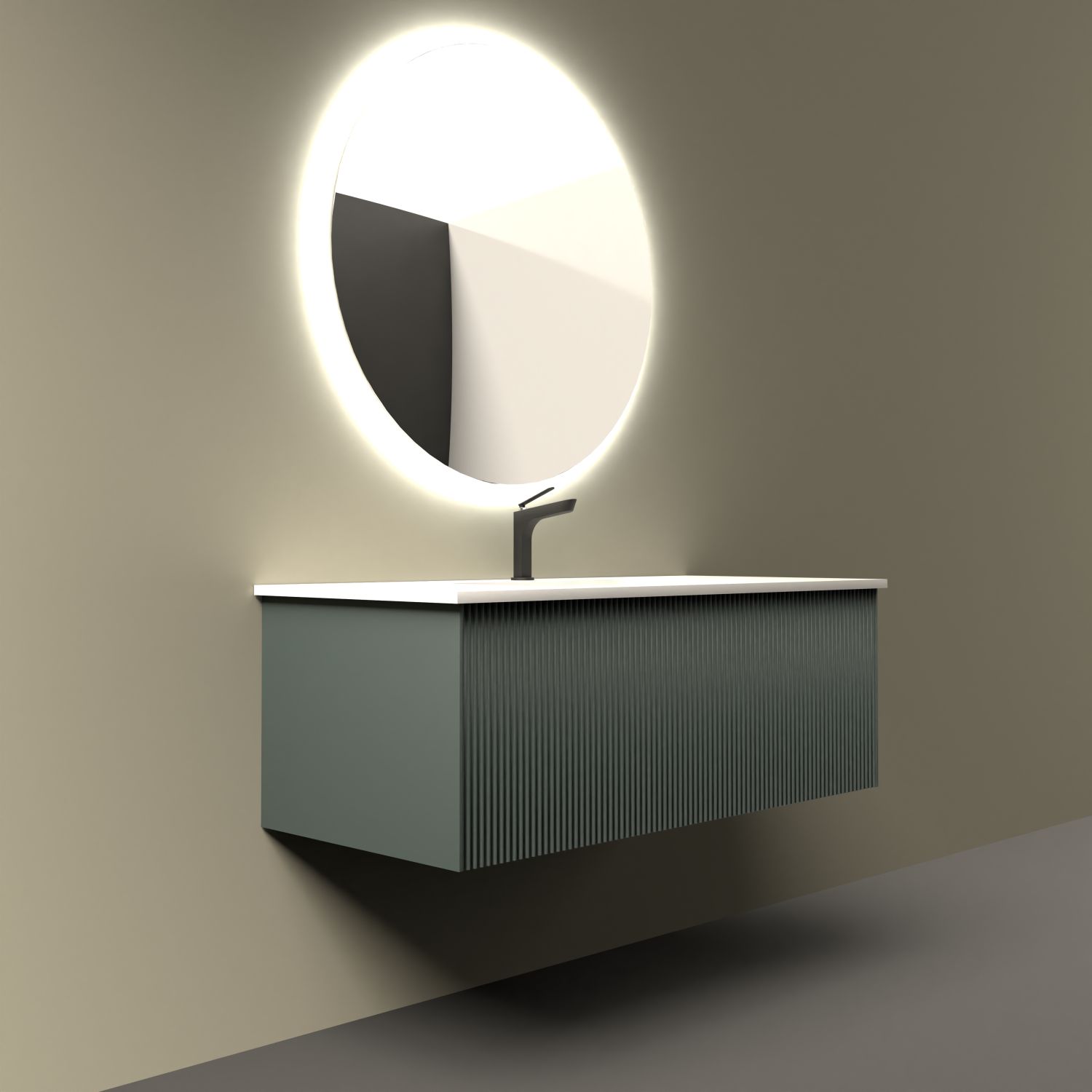 Тумба под раковину подвесная La Fenice Terra FNC-01-TER-G-100, серо-зеленая