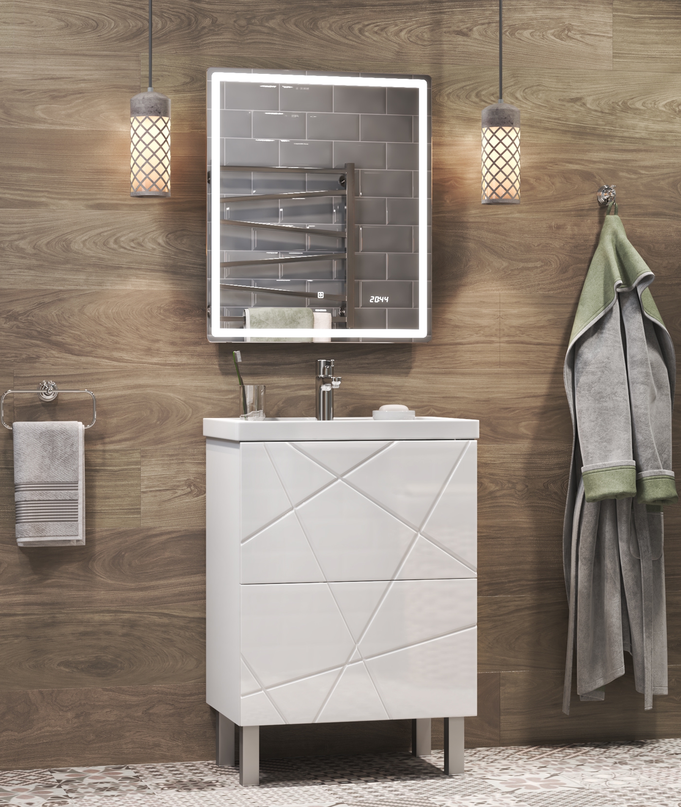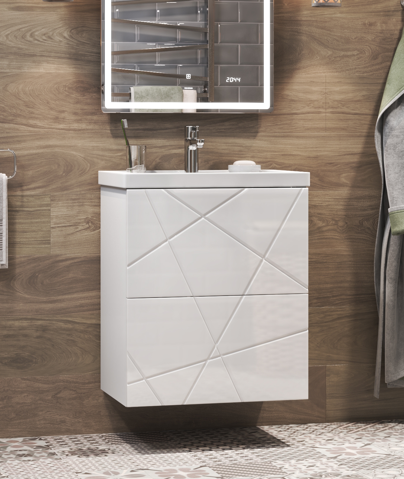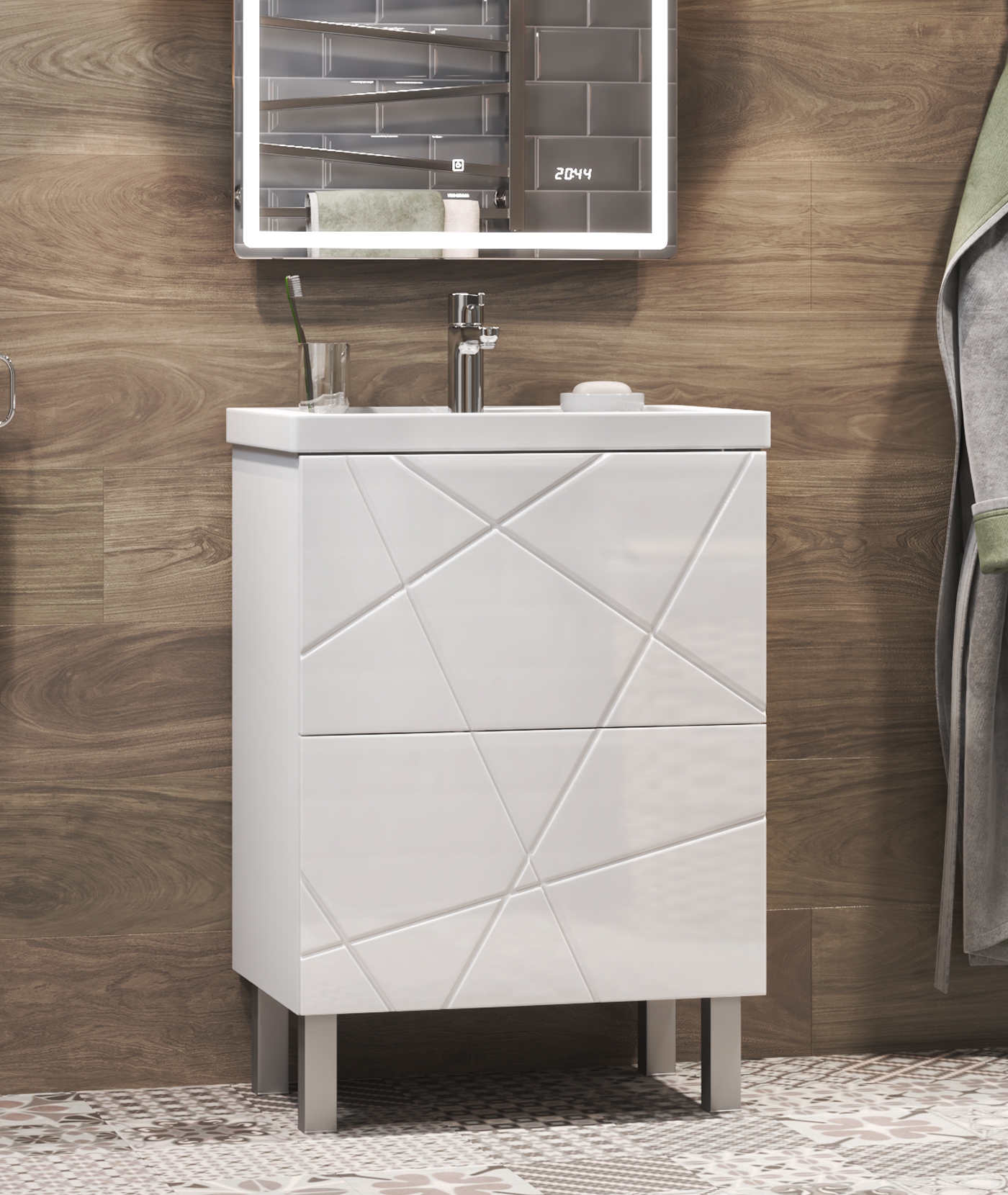 Тумба с раковиной напольная VIGO Geometry tn.bsf.GEO.FOS.50.2Y, 50 см. Раковина в комплекте. 2 ящика; опоры квадратные регулируемые. Специальный сифон Vigo в комплекте. Материл корпуса тумбы: влагостойкая ЛДСП Материал фасадов: МДФ Покрытие: пленка ПВХ Ящики: направляющие полного выдвижения, механизм push-to-open.