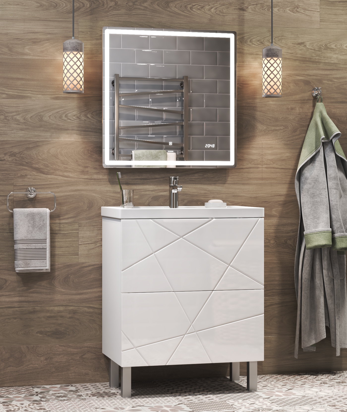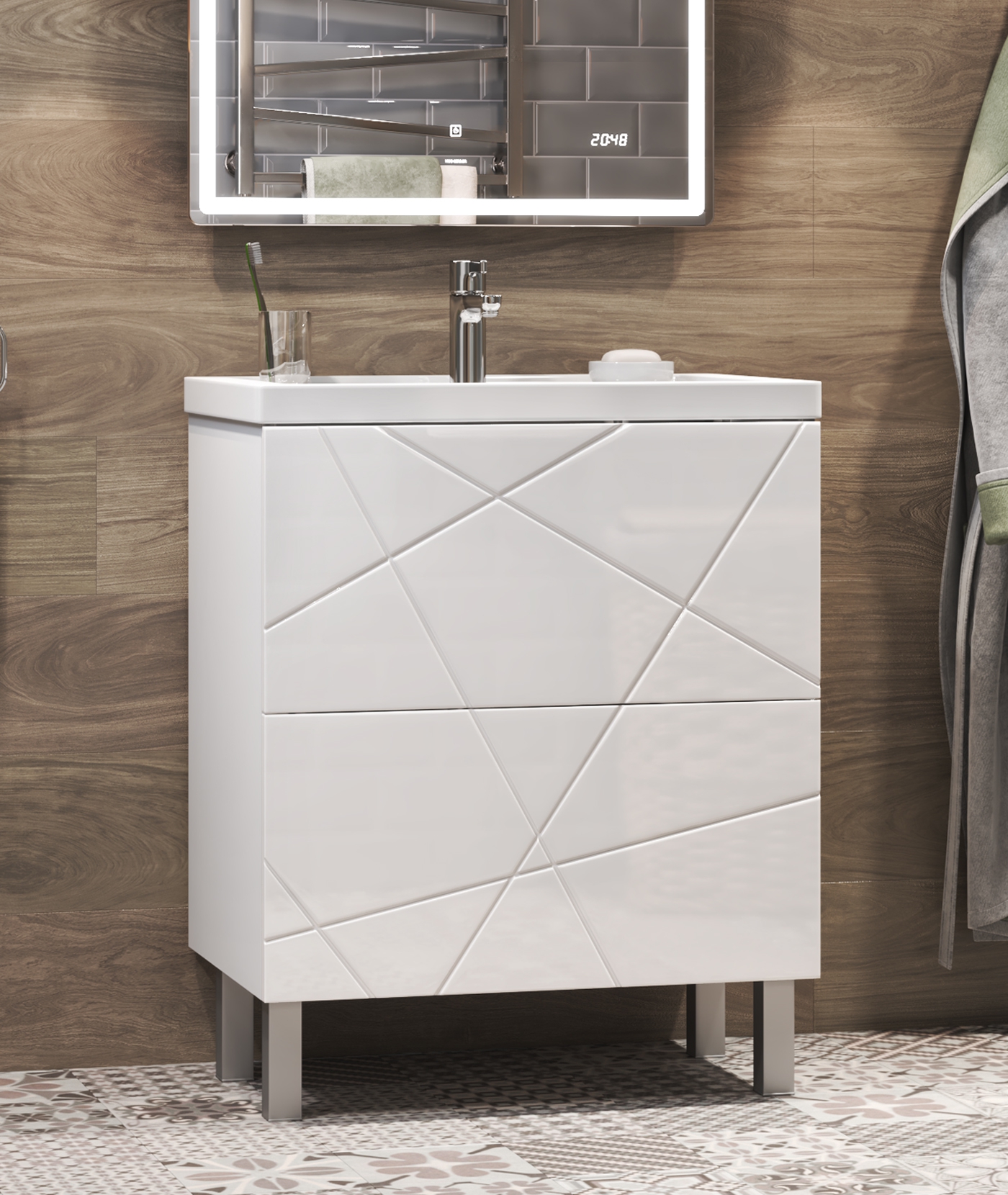 Тумба с раковиной напольная VIGO Geometry tn.bsf.GEO.FOS.60.2Y, 60 см. Раковина в комплекте. 2 ящика; опоры квадратные регулируемые. Специальный сифон Vigo в комплекте. Материл корпуса тумбы: влагостойкая ЛДСП Материал фасадов: МДФ Покрытие: пленка ПВХ Ящики: направляющие полного выдвижения, механизм push-to-open.
