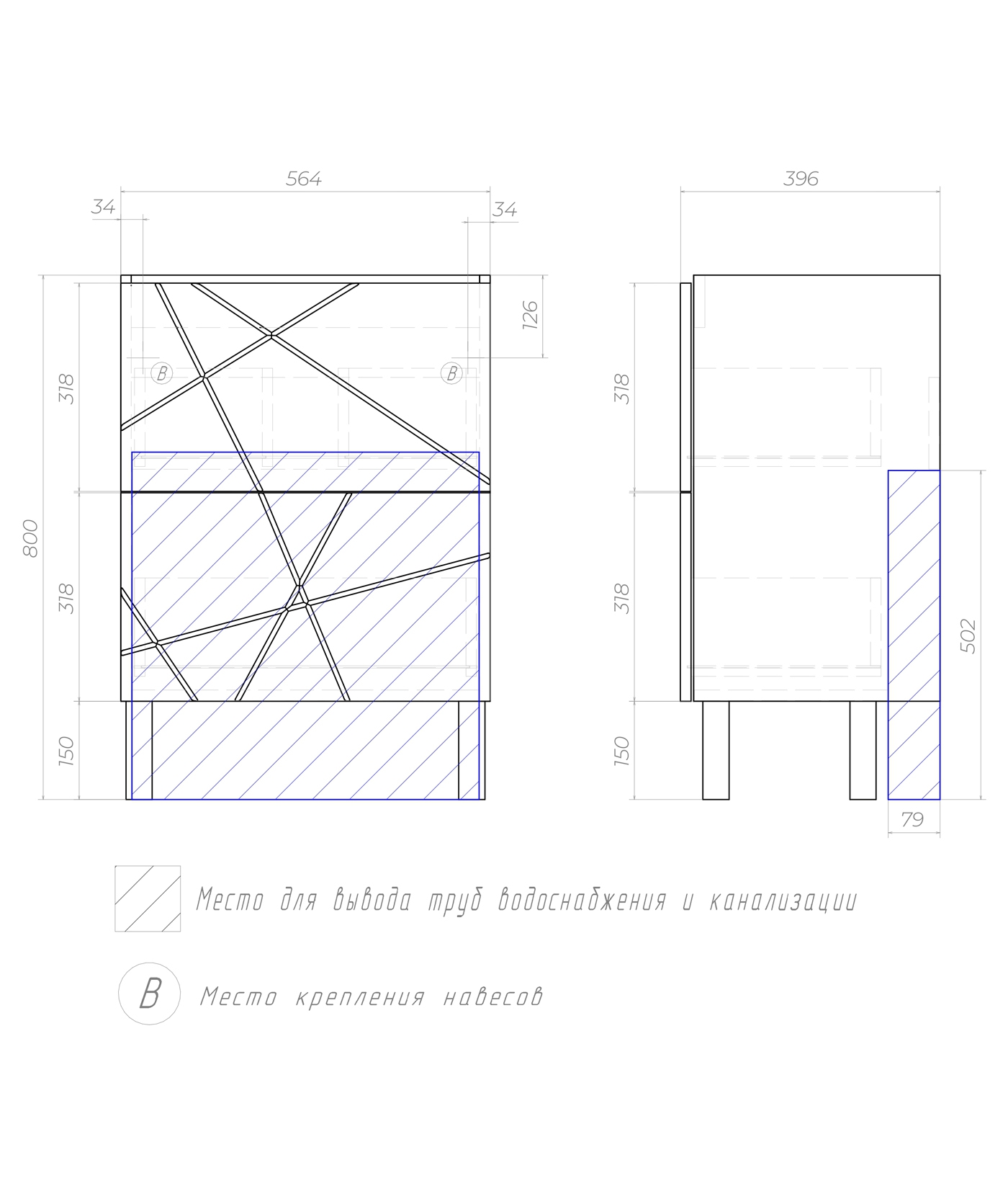 Тумба с раковиной напольная VIGO Geometry tn.bsf.GEO.FOS.60.2Y, 60 см