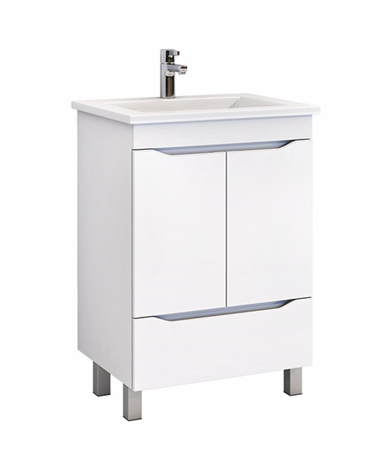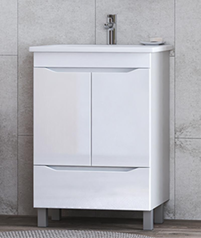 Тумба с раковиной напольная VIGO Grani tn.GRI.ELI.60.2D.1Y, 60 см. Раковина в комплекте. 2 дверцы, 1 ящик; 1 полка ЛДСП; органайзер для мелочей, опоры квадратные регулируемые; вариант размещения: напольное.