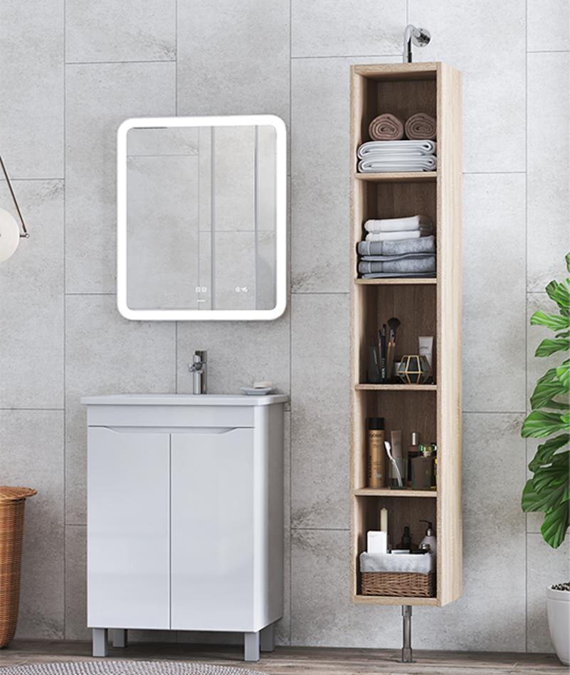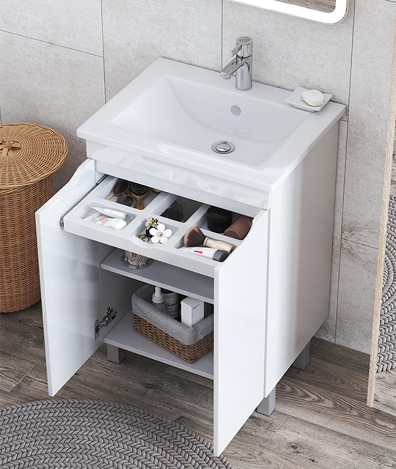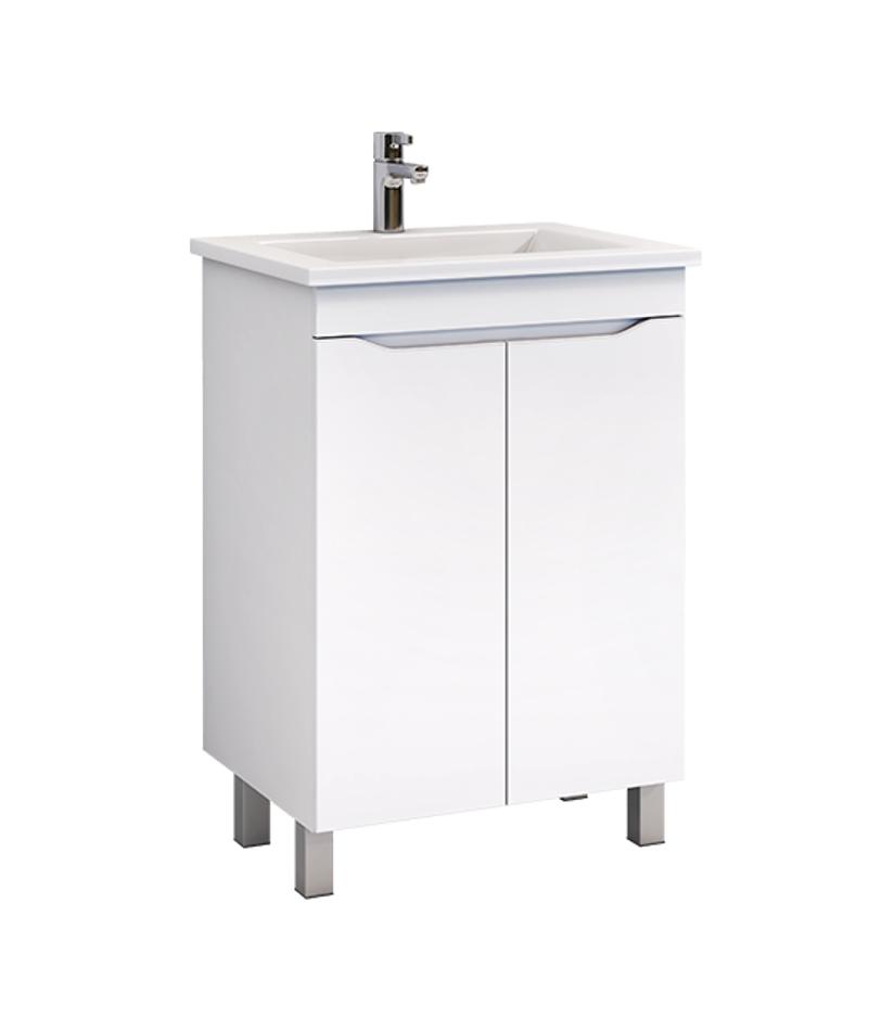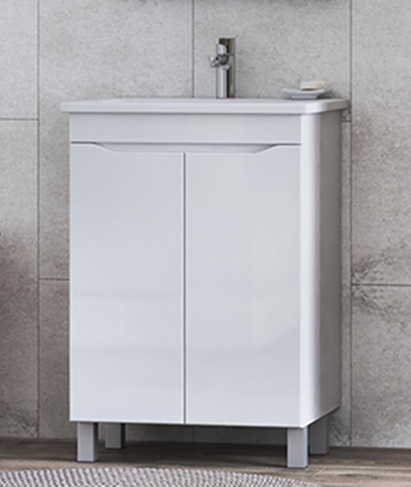 Тумба с раковиной напольная VIGO Grani tn.GRI.ELI.60.2D, 60 см. Раковина в комплекте. 2 дверцы, 1 полка ЛДСП; органайзер для мелочей; опоры квадратные регулируемые; размещение: напольное.