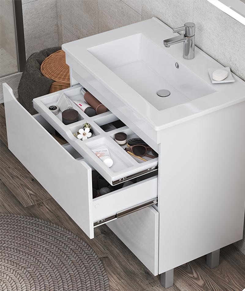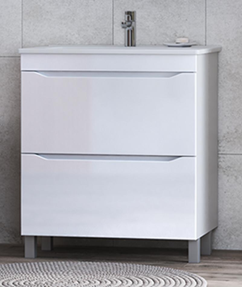 Тумба с раковиной напольная VIGO Grani tn.GRI.OSK.75.2Y, 75 см. Раковина в комплекте. 2 ящика, органайзер для мелочей; опоры квадратные регулируемые варианты размещения: напольное.