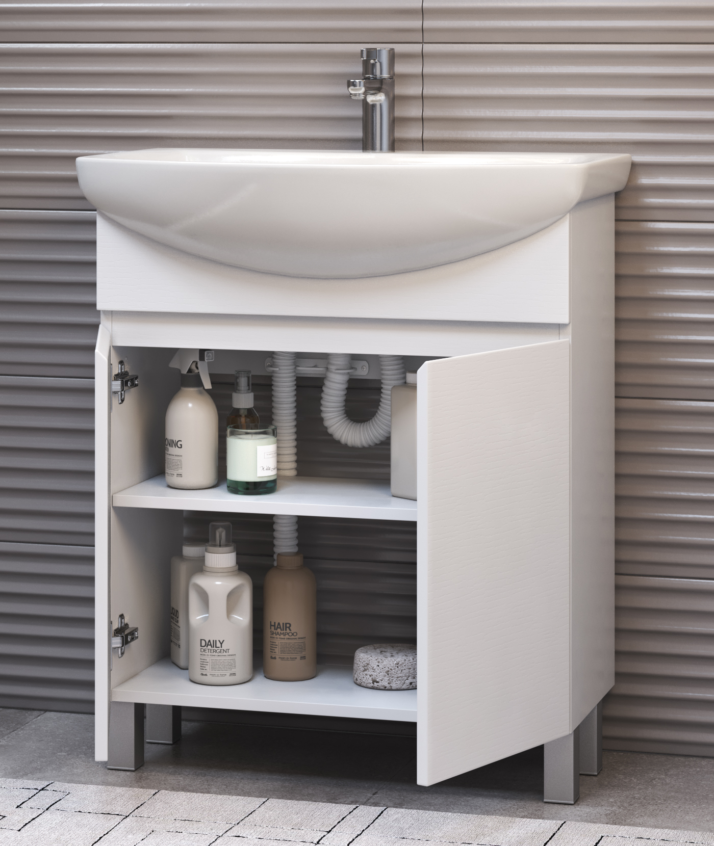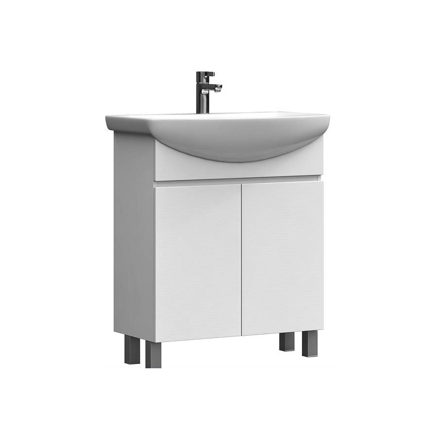 Тумба с раковиной напольная VIGO Wing tn.WIN.BAL.60.2D белый, 60 см. Раковина в комплекте. 2 дверцы, 1 полка ЛДСП, опоры регулируемые квадратные. Материал корпуса и фасада: влагостойкая ЛДСП Дверцы: петли с механизмом плавного закрывания Отсутствие лицевой фурнитуры – интегрированная в фасад ручка.