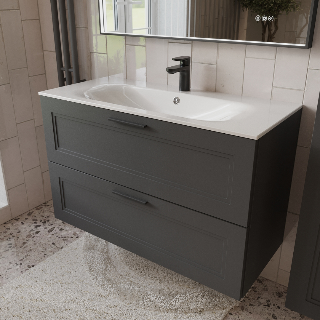 Тумба с раковиной подвесная (100см) Terminus Classik CLA101002701601O, графит