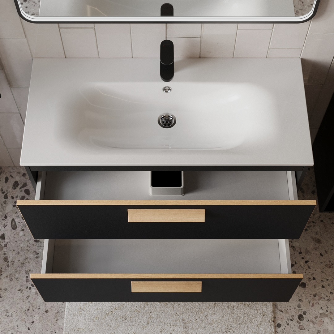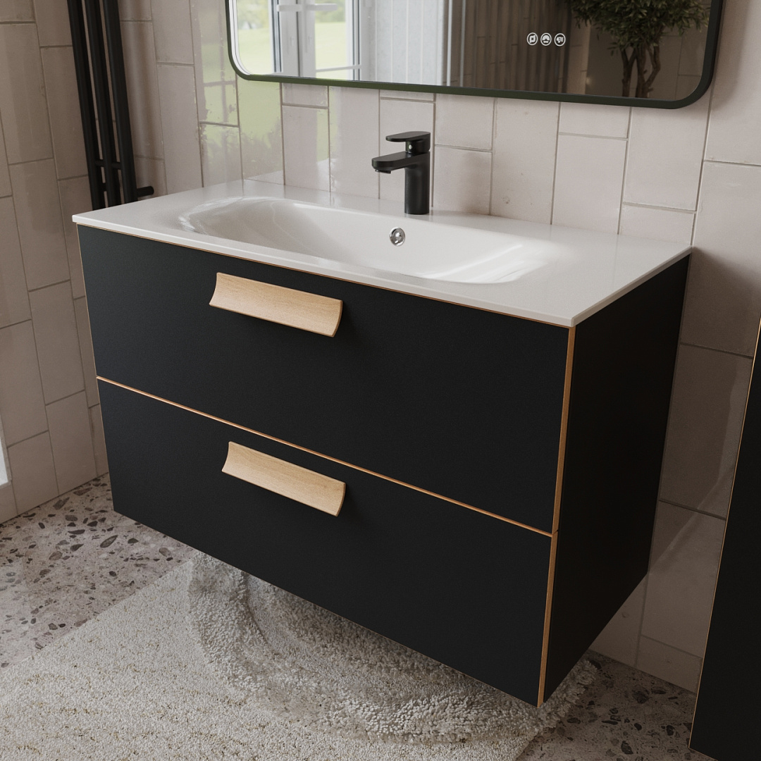 Тумба с раковиной подвесная (100см) Terminus Noto NOT101002099901O, черный soft touch