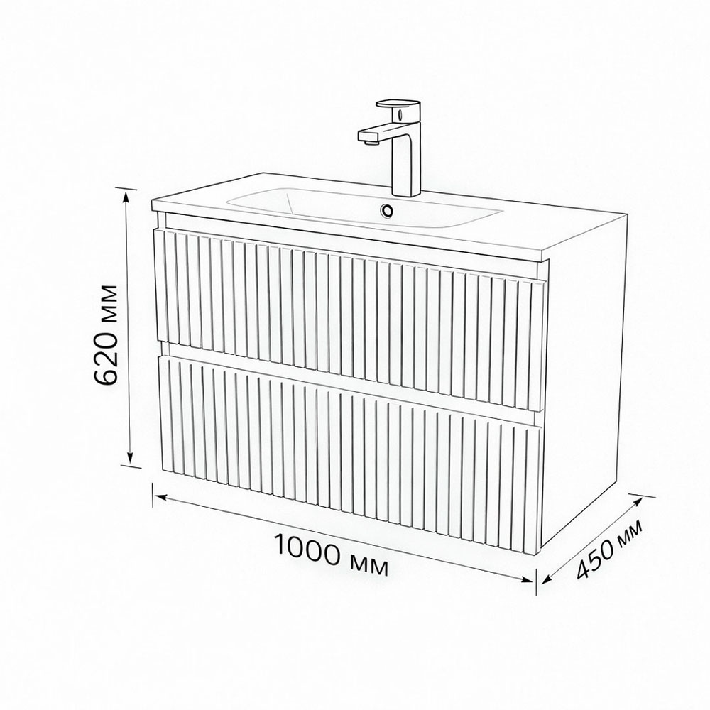 Тумба с раковиной подвесная (100см) Terminus Vatikan VAT101002703101O, серый шёлк. Раковина из литьевого мрамора в комплекте: диаметр отверстия под смеситель: 35, диаметр отверстия слива: 45 мм, диаметр отверстия перелива: 30 мм. Ширина тумбы: 1000 мм. Тип фасада: Флейтовая фрезеровка . Материал ящиков: ДСП. Количество ящиков: 2. Сифон и данный клапан приобретаются отдельно и в комплект поставки не входят. В тумбе установлена фурнитура Firmax. Система открывания: Фрезерованные ручки. Технология направляющих: Soft-Close, полного выдвижения, с доводчиком. Тумба поставляется в сборе. Гарантийный срок 2 года.