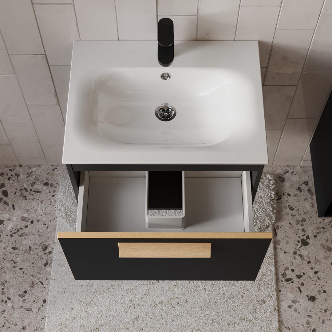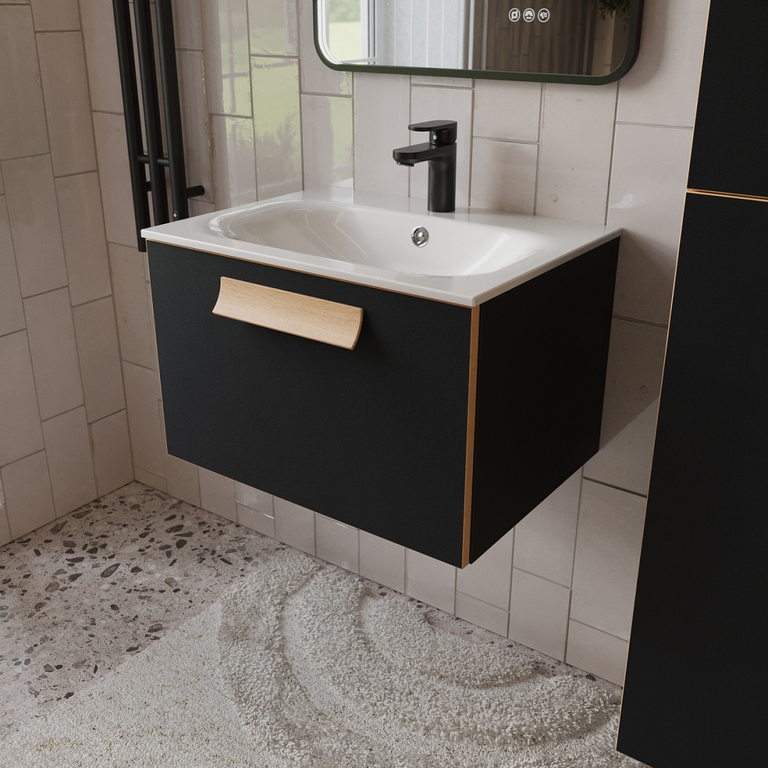 Тумба с раковиной подвесная (60см) Terminus Noto NOT10601099901O, черный soft touch
