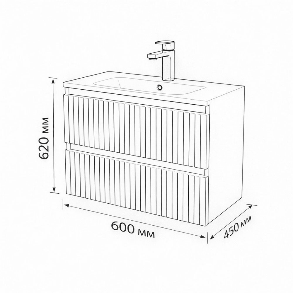 Тумба с раковиной подвесная (60см) Terminus Sicilia SIC10602900301O, белый. Раковина из литьевого мрамора в комплекте: диаметр отверстия под смеситель: 35, диаметр отверстия слива: 45 мм, диаметр отверстия перелива: 30 мм. Ширина тумбы: 600 мм. Тип фасада: Волнообразная фрезеровка . Материал ящиков: ДСП. Количество ящиков: 2. Сифон и данный клапан приобретаются отдельно и в комплект поставки не входят. В тумбе установлена фурнитура Firmax. Система открывания: Фрезерованные ручки. Технология направляющих: Soft-Close, полного выдвижения, с доводчиком. Тумба поставляется в сборе. Гарантийный срок 2 года.