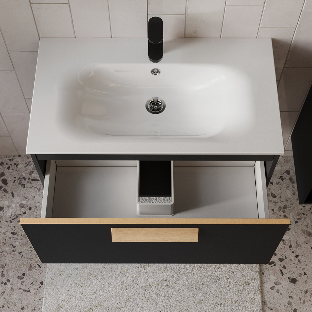 Тумба с раковиной подвесная (80см) Terminus Noto NOT10801099901O, черный soft touch