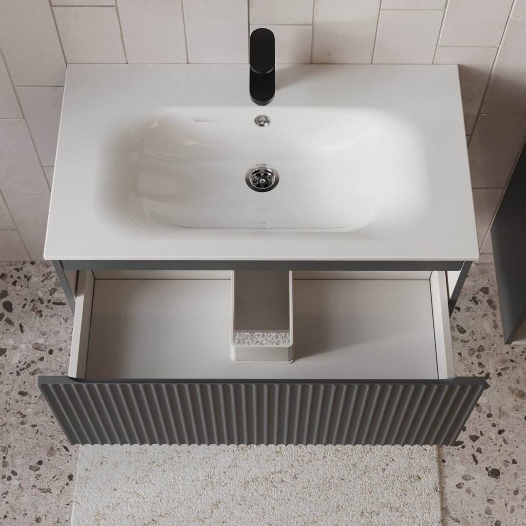 Тумба с раковиной подвесная (80см) Terminus Sicilia SIC10801701601O, графит