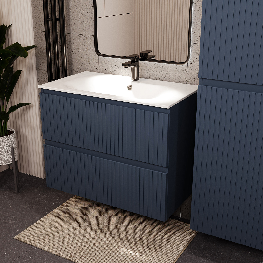 Тумба с раковиной подвесная (80см) Terminus Vatikan VAT10802703101O, серый шёлк. Раковина из литьевого мрамора в комплекте: диаметр отверстия под смеситель: 35, диаметр отверстия слива: 45 мм, диаметр отверстия перелива: 30 мм. Ширина тумбы: 800 мм. Тип фасада: Флейтовая фрезеровка . Материал ящиков: ДСП. Количество ящиков: 2. Сифон и данный клапан приобретаются отдельно и в комплект поставки не входят. В тумбе установлена фурнитура Firmax. Система открывания: Фрезерованные ручки. Технология направляющих: Soft-Close, полного выдвижения, с доводчиком. Тумба поставляется в сборе. Гарантийный срок 2 года.