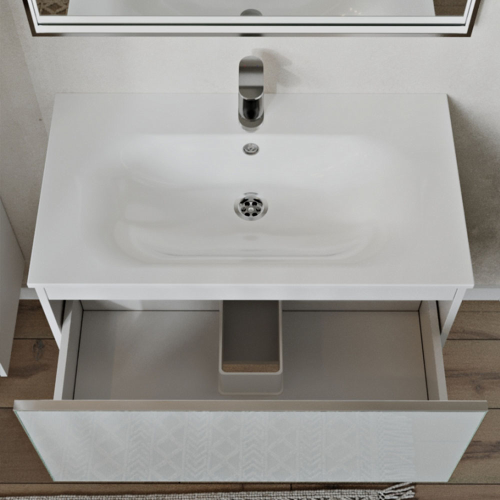 Тумба с раковиной подвесная (80см) Terminus Vega VEG10801900301OSL, белый. Раковина из литьевого мрамора в комплекте: диаметр отверстия под смеситель: 35 мм, диаметр отверстия слива: 45 мм, диаметр отверстия перелива: 30 мм. Ширина тумбы: 800 мм. Тип фасада: Стекло в профиле. Материал ящиков: ДСП. Количество ящиков: 1. Сифон и донный клапан приобретаются отдельно и в комплект поставки не входят. В тумбе установлена фурнитура Firmax. Система открывания: Push-to-Open (открытие при нажатии). Технология направляющих: Soft-Close, полного выдвижения, с доводчиком. Тумба поставляется в сборе. Гарантийный срок 2 года.
