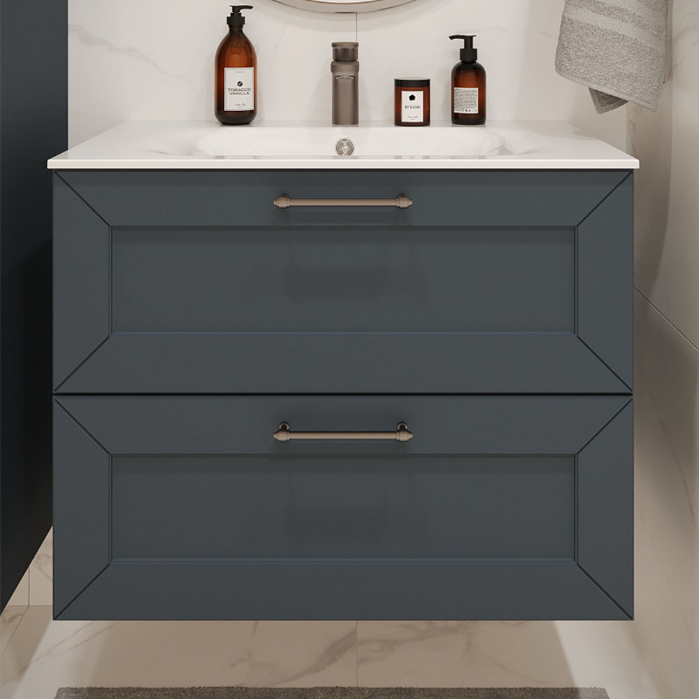 Тумба с раковиной подвесная (80см) Terminus Victoria VIC10802703101O, серый шёлк