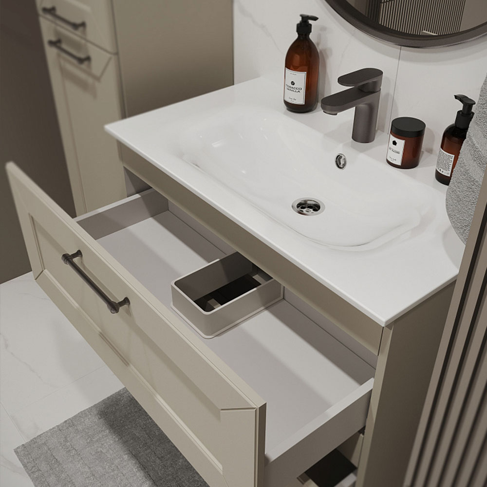 Тумба с раковиной подвесная (80см) Terminus Victoria VIC10802900101O, айвори