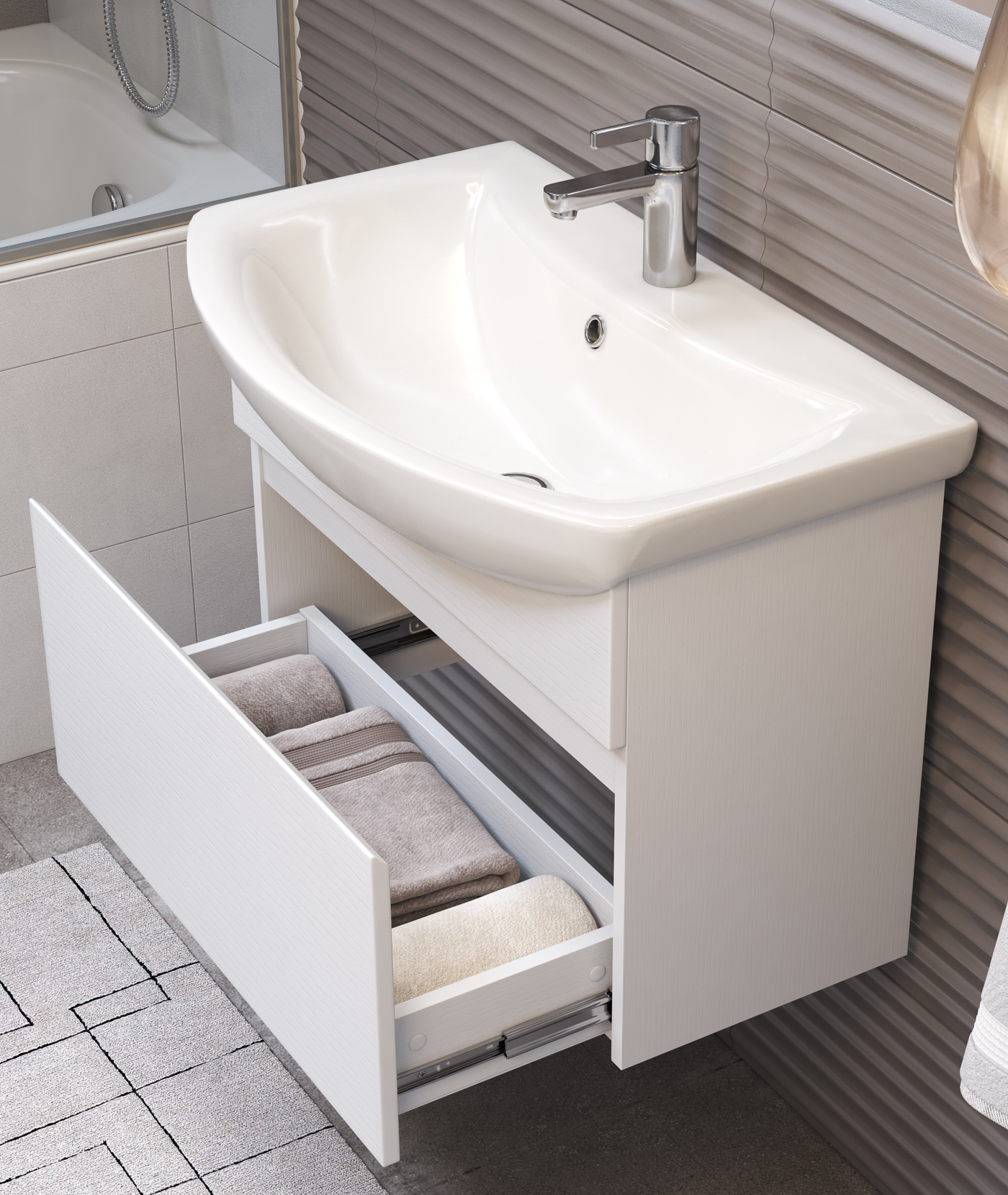 Тумба с раковиной подвесная VIGO Wing tp.WIN.BAL.60.1Y белый, 60 см. Раковина в комплекте. 1 ящик. Специальный сифон Vigo в комплекте. Материал корпуса и фасада: влагостойкая ЛДСП Ящики: направляющие полного выдвижения Отсутствие лицевой фурнитуры – интегрированная в фасад ручка.