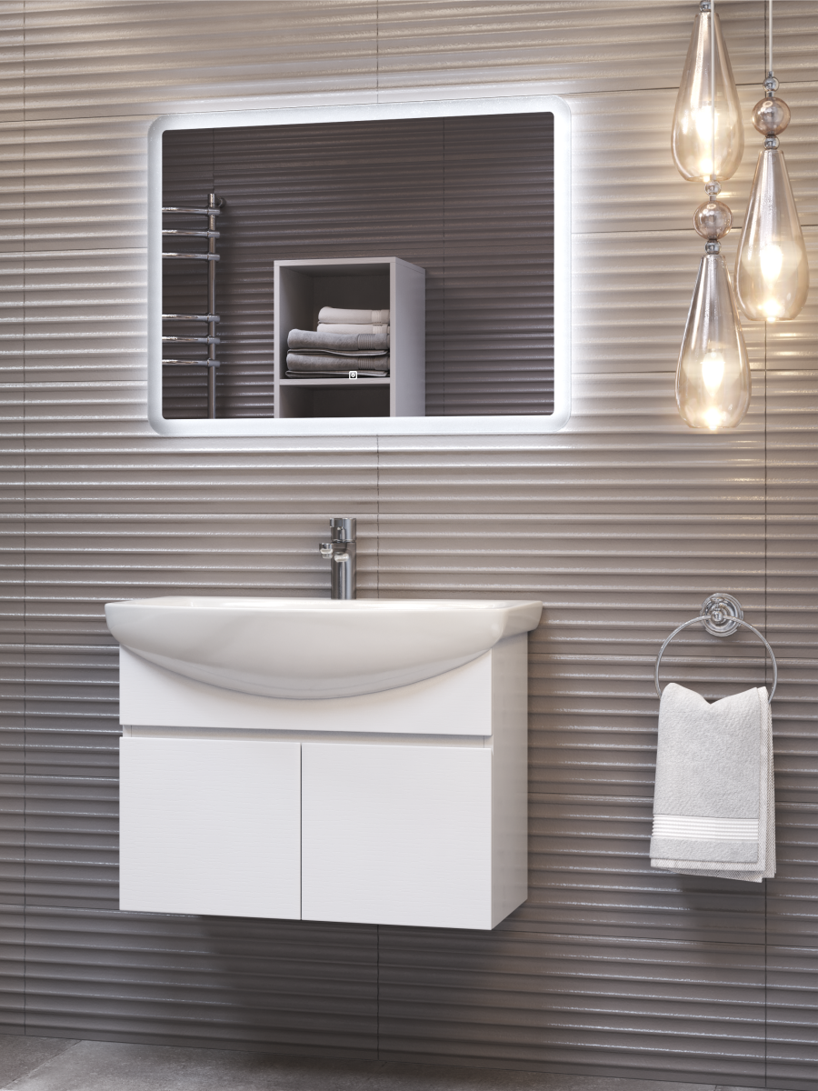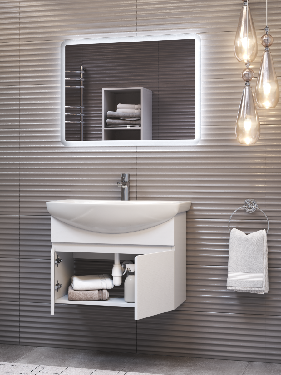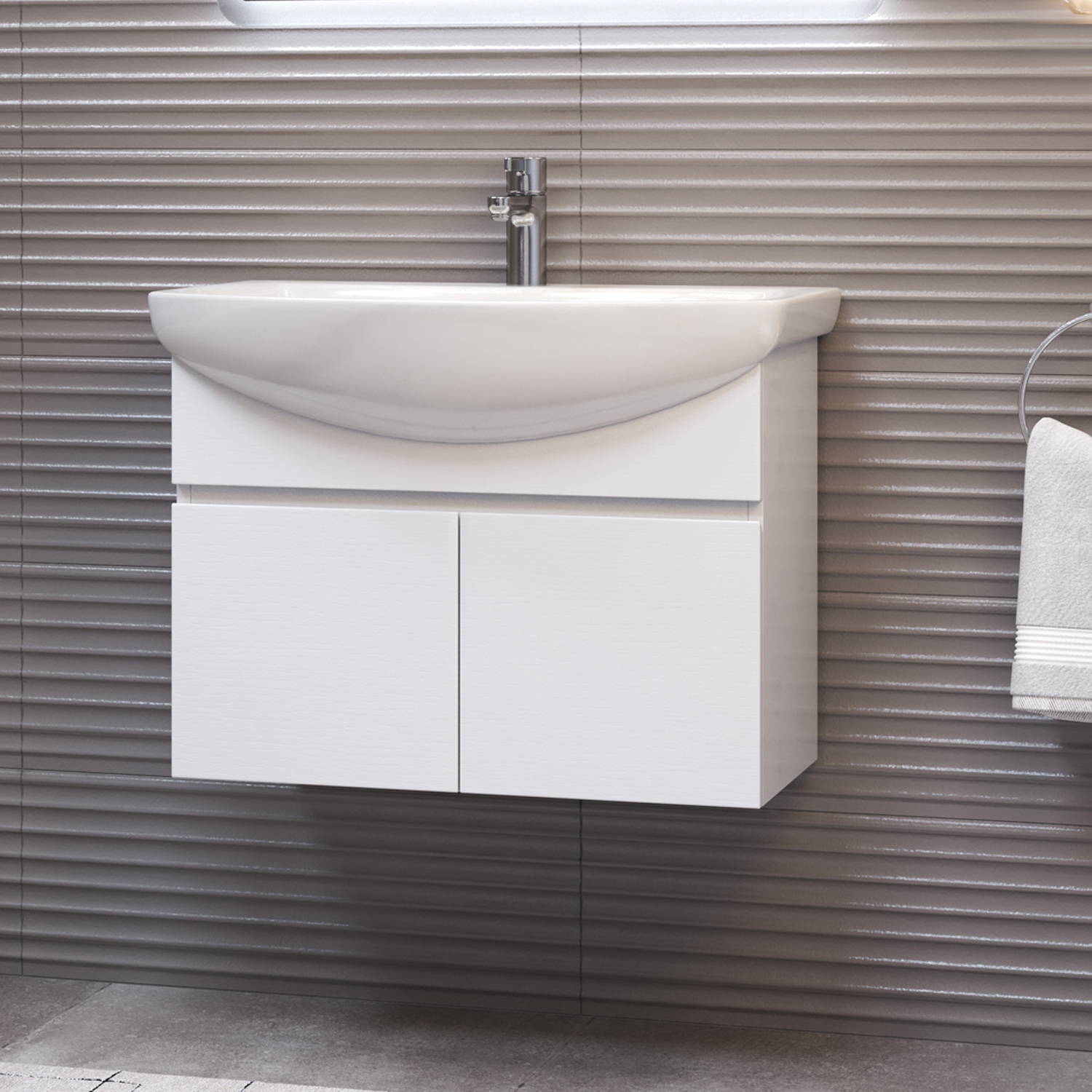Тумба с раковиной подвесная VIGO Wing tp.WIN.BAL.70.2D белый, 70 см. Раковина в комплекте. 2 дверцы. Материал корпуса и фасада: влагостойкая ЛДСП Дверцы: петли с механизмом плавного закрывания Отсутствие лицевой фурнитуры – интегрированная в фасад ручка.