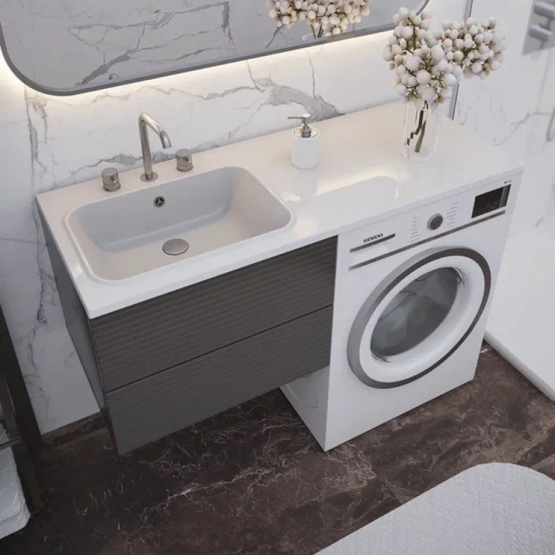 Раковина-столешница универсальная Paola Bella 1200 L (левая чаша) для подвесной установки над стиральной машиной и частично на тумбу. Современная, стильная, эргономичная, позволяет экономить площадь ванной комнаты (под столешницу прекрасно впишется стиральная машина). Также возможен монтаж раковины полностью на тумбу вровень. Раковина выполнена из прочного износостойкого литьевого мрамора, сверху покрыта специальным защитным покрытием гелькоутом. Исполнение поверхности Glossy Shine - изделие обладает глянцевым блеском, очень приятное на ощупь, прочное. Даже при минимальном уходе долго сохраняет безупречный цвет и внешний вид. В комплекте - правый кронштейн с крепежом, слив-перелив, технический паспорт и гарантийный талон. Заводская гарантия составляет 5 лет, срок службы более 10 лет.