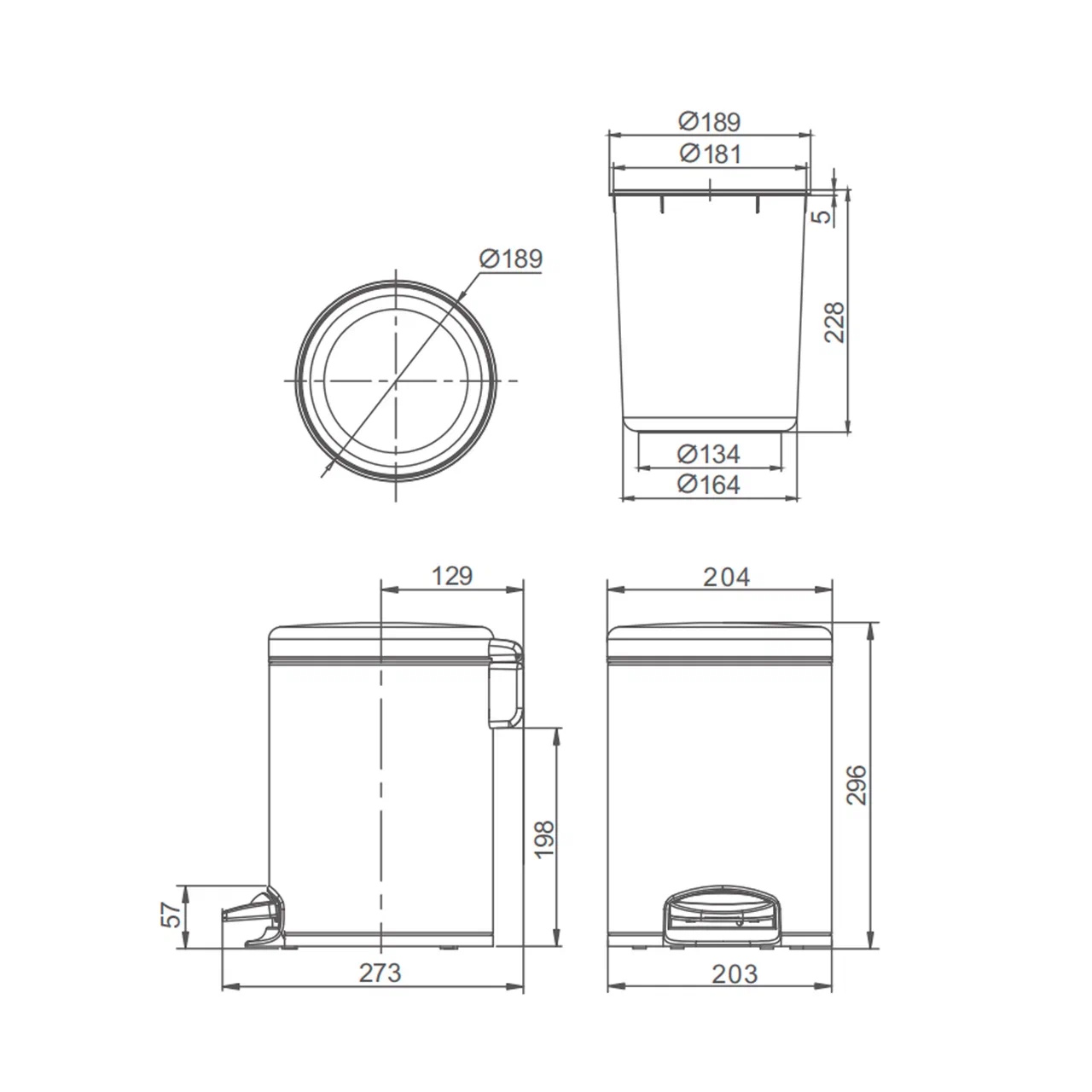 Комплектациякорпус мусорного ведра с педалью (в сборе), внутреннее ведро с ручкой (пластик), крышка