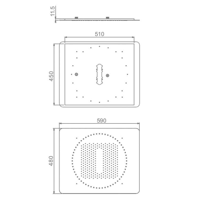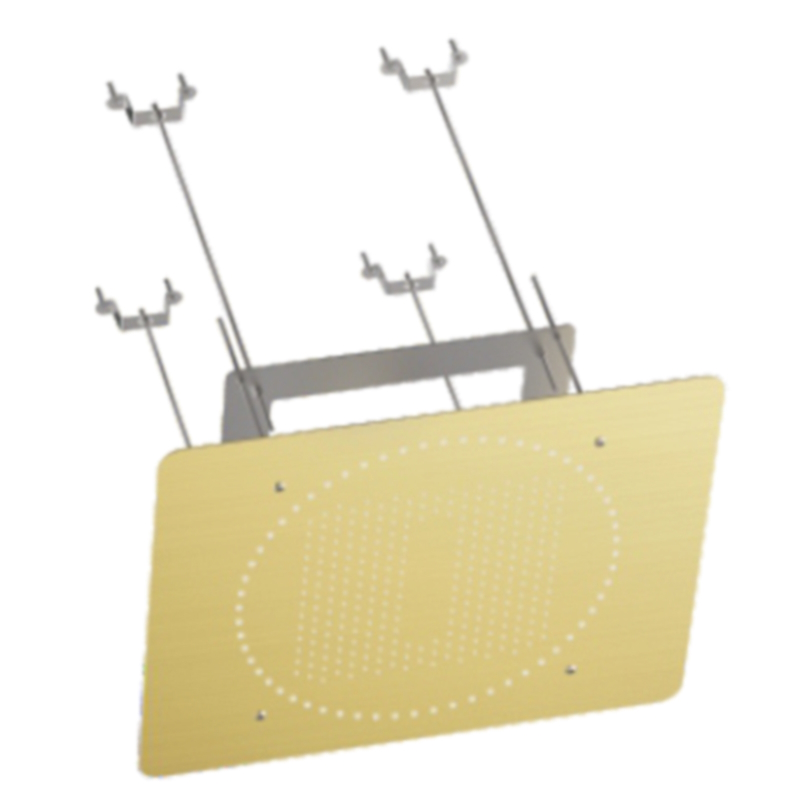 Тропический (верхний) душ Raglo R452.03.03. Цвет сатин золотой (брашированное золото). Материал нержавеющая сталь. Форма прямоугольная. Размер душа 590*480 мм. 2 режима лейки. Монтаж на потолок.