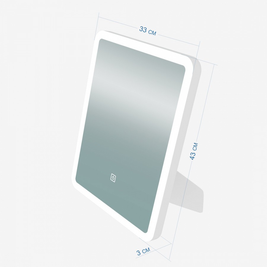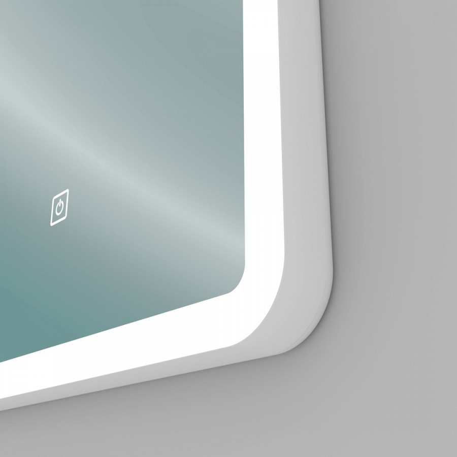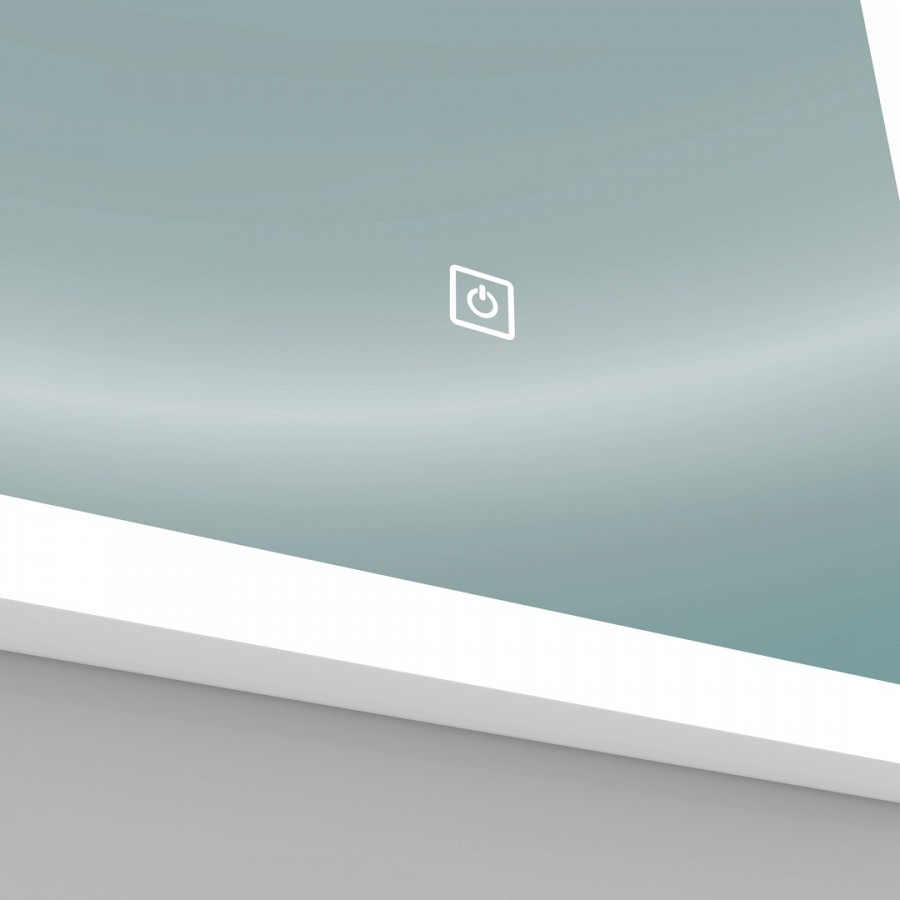 Зеркало имеет прямоугольную форму со слегка закругленными краями, качественная LED подсветка с питанием от электросети 220V позволяет легко осветить небольшую комнату без использования дополнительных источников освещения. Подсветка включается лёгким прикосновением к сенсорной кнопке.