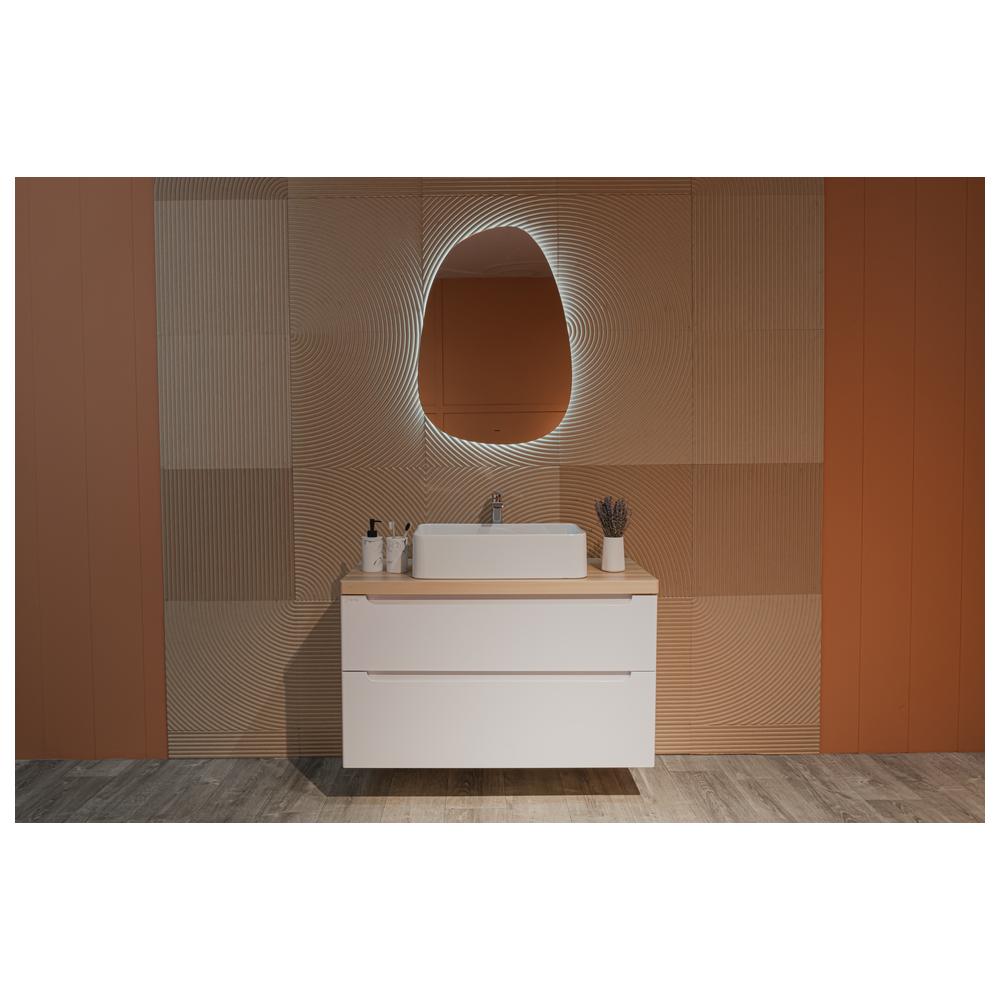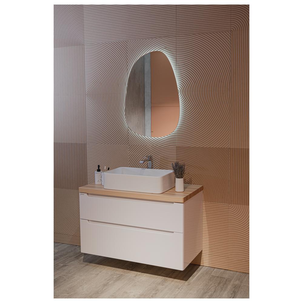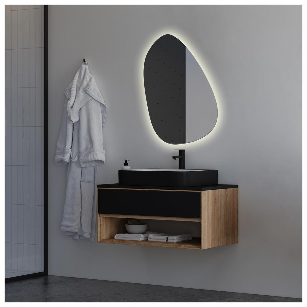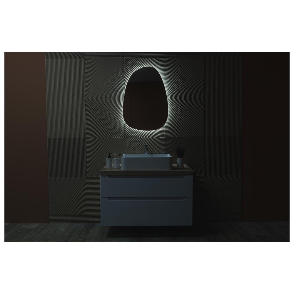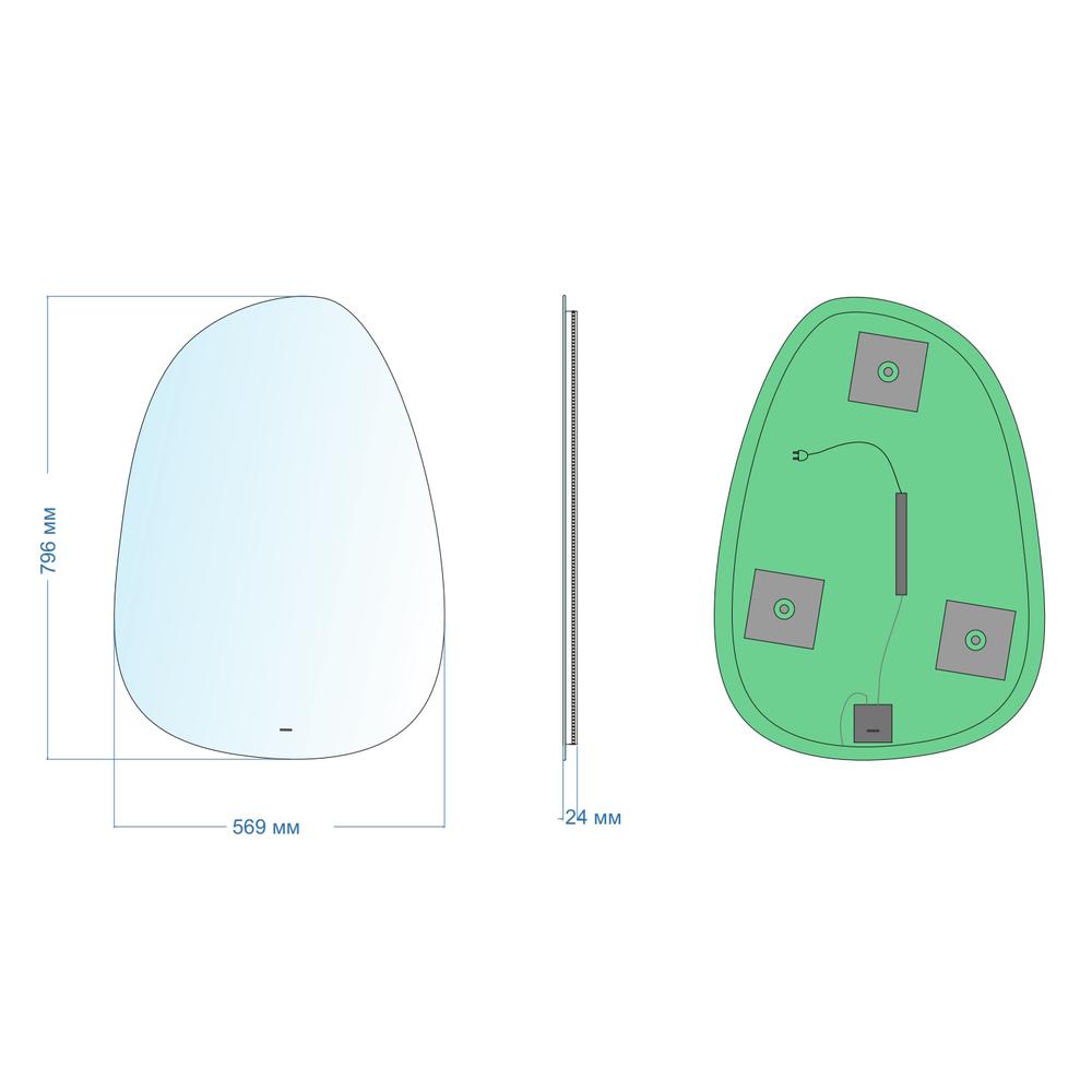 "Molecula - Lite" 569х796 (открытая подсветка, бесконтактный сенсор) зеркало. Неправильная форма и асимметрия — приёмы, которые делают пространство живым и интересным: нотки несовершенства всегда добавляют лёгкости и уюта. Отсутствие обрамления превращает зеркало в портал для полёта фантазии. Модель понравится любителям нестандартных решений и творческим натурам.