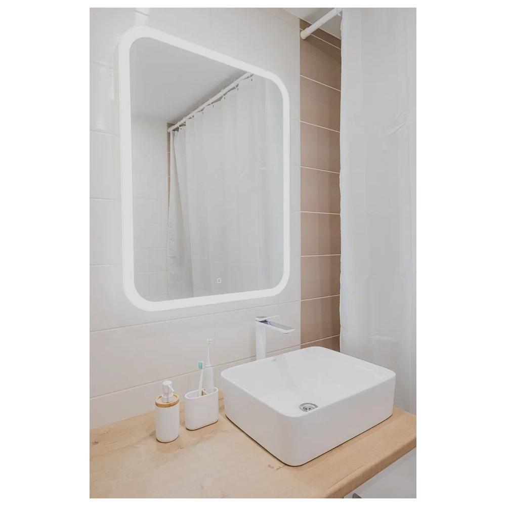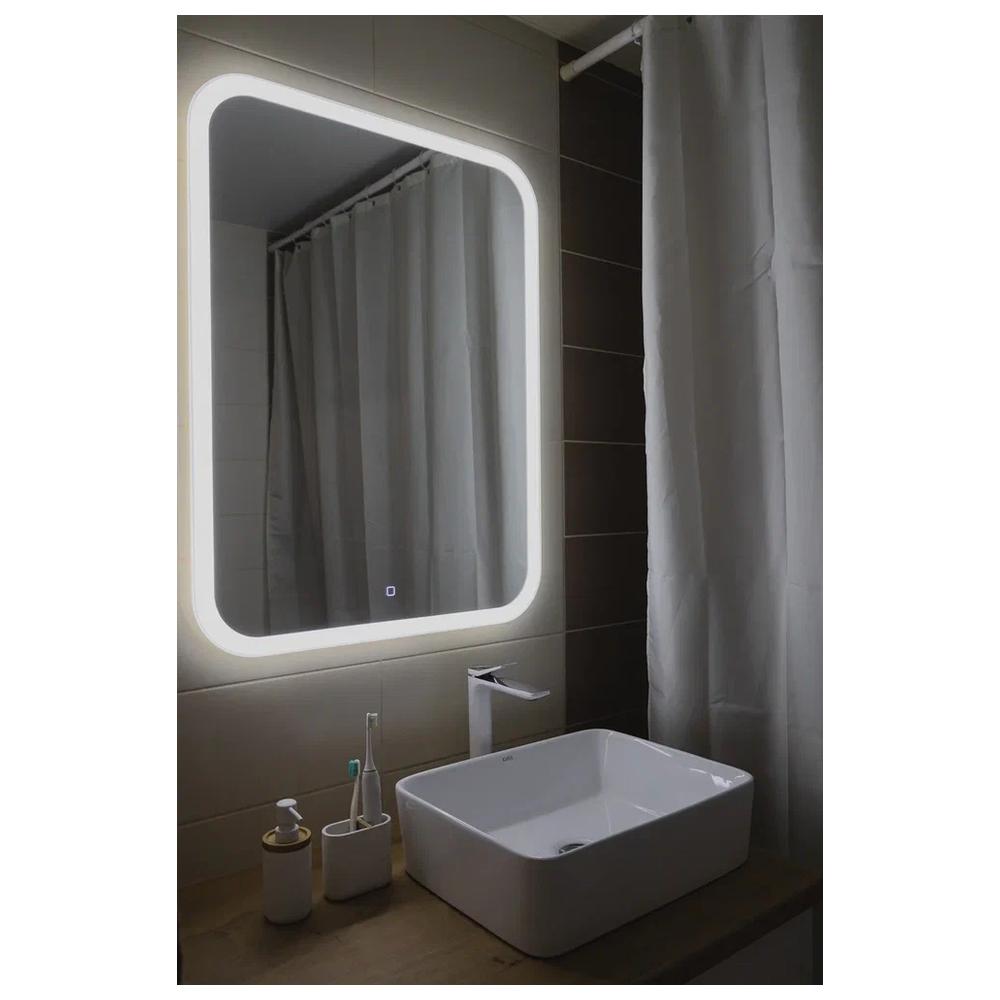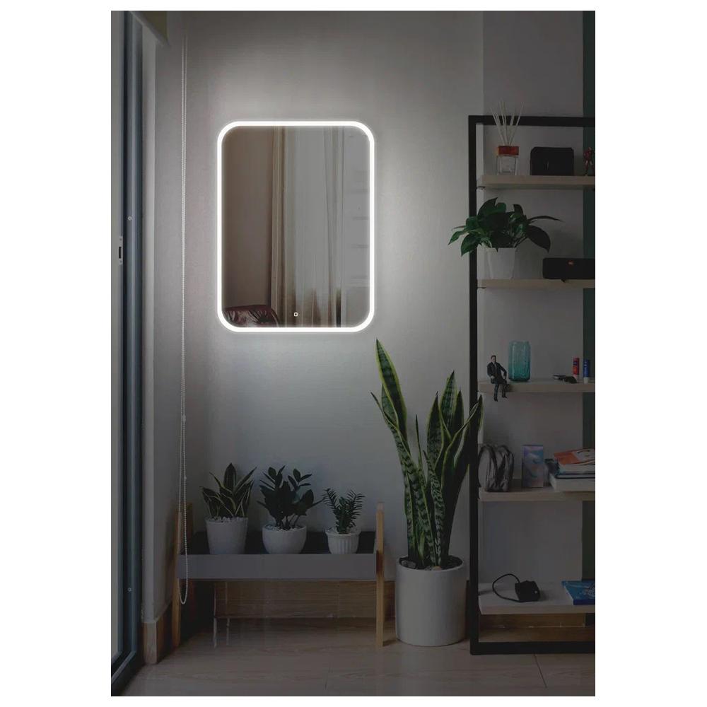 "Стив" 685х915 вертикальный (сенсорный выключатель) зеркало. Стильное, лаконичное вертикальное зеркало со скруглёнными углами органично впишется в любой интерьер — от консервативной классики до самодостаточного минимализма. Прямоугольная модель подчеркнёт упорядоченность пространства, прекрасно гармонируют с мебелью как традиционной, так и геометричной формы, а скругления на зеркале смягчат строгие, чёткие линии интерьера. LED-подсветка по периметру, управляемая сенсорным выключателем с функцией диммера и усиливающая эффект смягчения, создаст приятную завораживающую атмосферу.