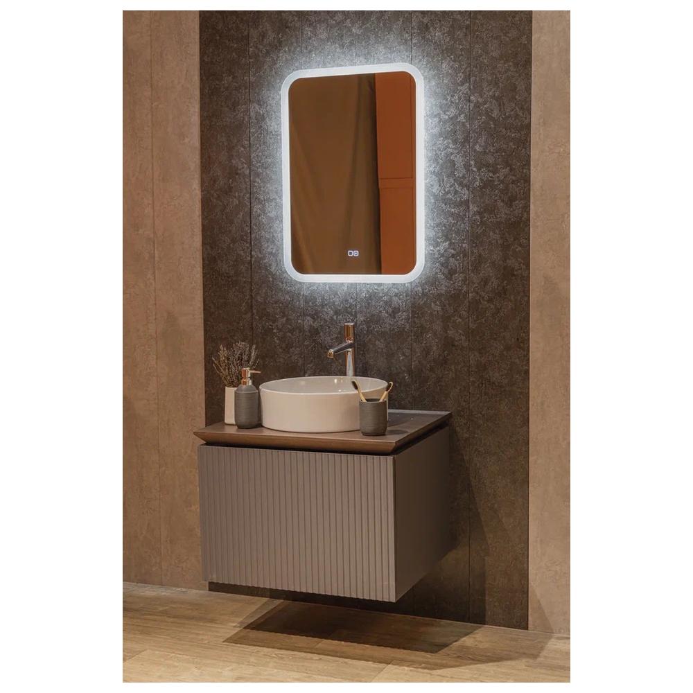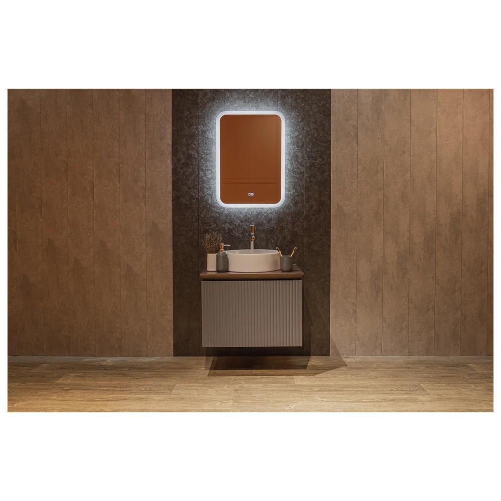 "Stiv - Lite" 500х700 - 2 (открытая подсветка, cенсорный выключатель, подогрев) зеркало. Прямоугольное зеркало сочетает функциональную и интерьерную LED-подсветку. Направленный свет обеспечивает освещение лица без теней и бликов и мягко рассеивается за зеркальным полотном, украшая интерьер. Управляется сенсорным выключателем. Функция диммера позволяет плавно отрегулировать яркость. Функция памяти предназначена для запоминания последней настройки яркости. Функция подогрева исключает запотевание зеркальной поверхности в ванной комнате. Долговечное влагостойкое серебряное полотно от ведущих мировых марок AGC и Sisecam отличается идеальным отражением без искажений и самым высоким показателем коррозийной стойкости. Эстетичная полированная кромка делает зеркало безопасным в использовании.