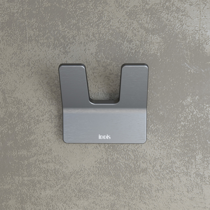 • Крючок IDDIS® прослужит дольше во влажном помещении ванной комнаты благодаря прочному и стойкому к коррозии сплаву металлов.
