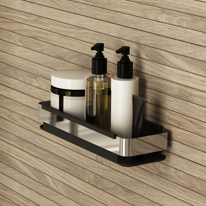 Прямоугольная полка для ванной комнаты размером 300х128 мм вместит все необходимое для комфортного принятия душа. Внутри полки размещен гигиеничный короб – съемная вставка из прочного ABS-пластика в цвет внешнего корпуса, которая легко вытаскивается и моется, не ржавеет и не деформируется, не впитывает запахи. Изделие выполнено в трендовом черном цвете и станет ярким акцентом в любом интерьере.