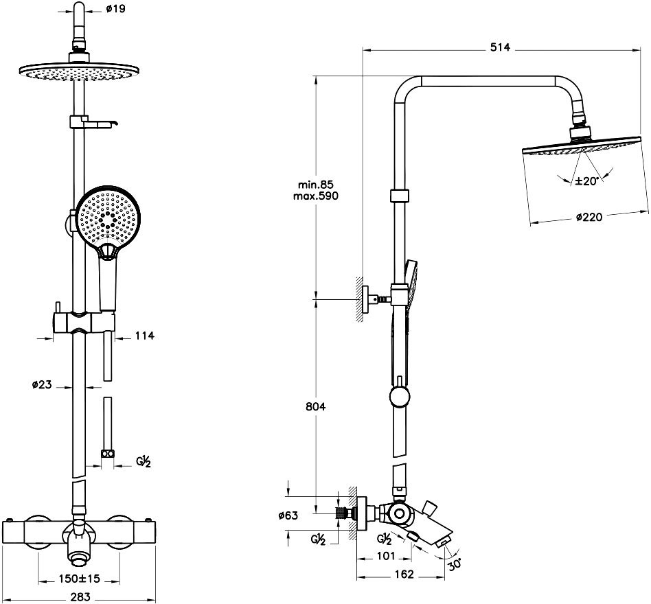 A47208EXP Душевая колонна Aquaheat Joy 220B, цвет хром
