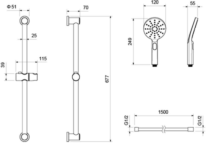 Душевой гарнитур AQUATEK ОБЕРОН, 3jet 65 см, хром AQ2016CR
