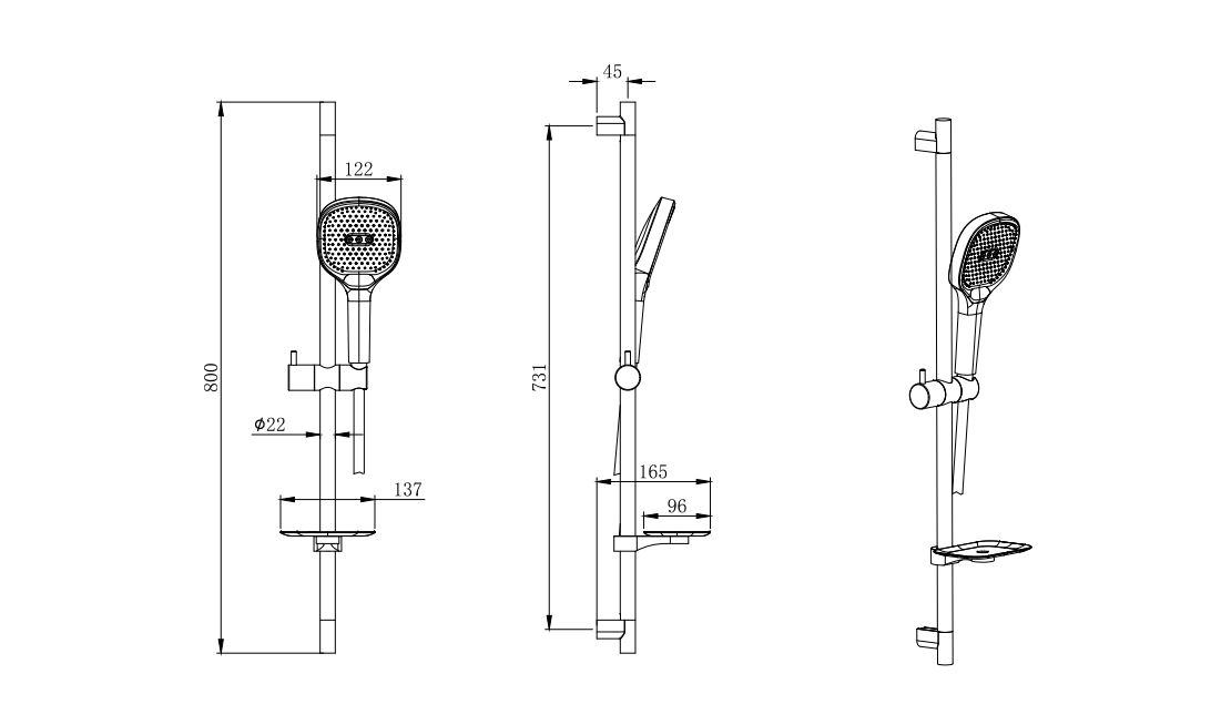 Душевой гарнитур AQUATEK AQ2021CR, 3jet, 73см