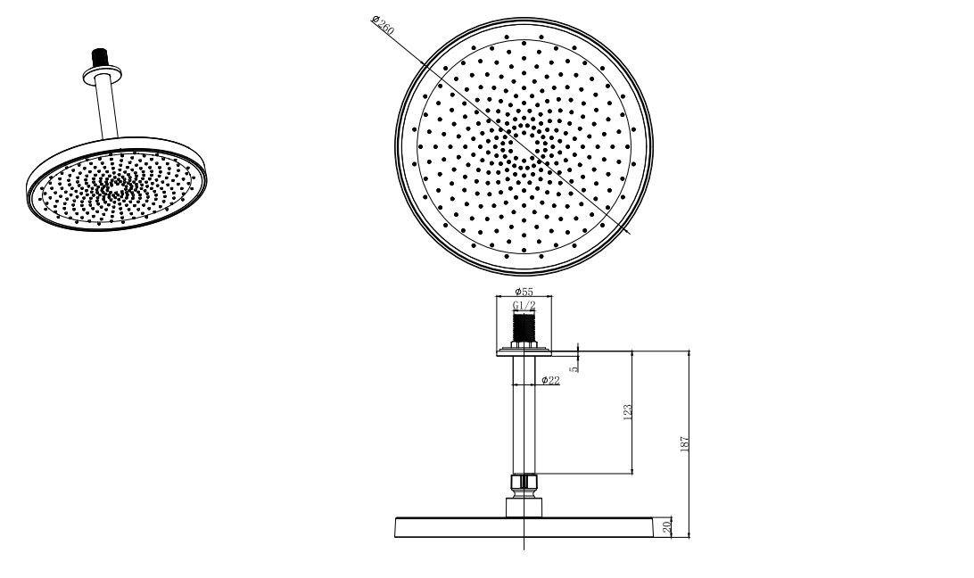 Верхний душ AQUATEK AQ2070CR, потолочный 260мм