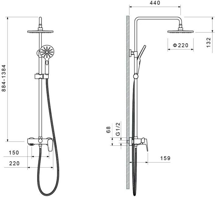 Душевая система (смеситель для ванны) 220мм AQUATEK БЕТТА, матовый черный AQ2140MB