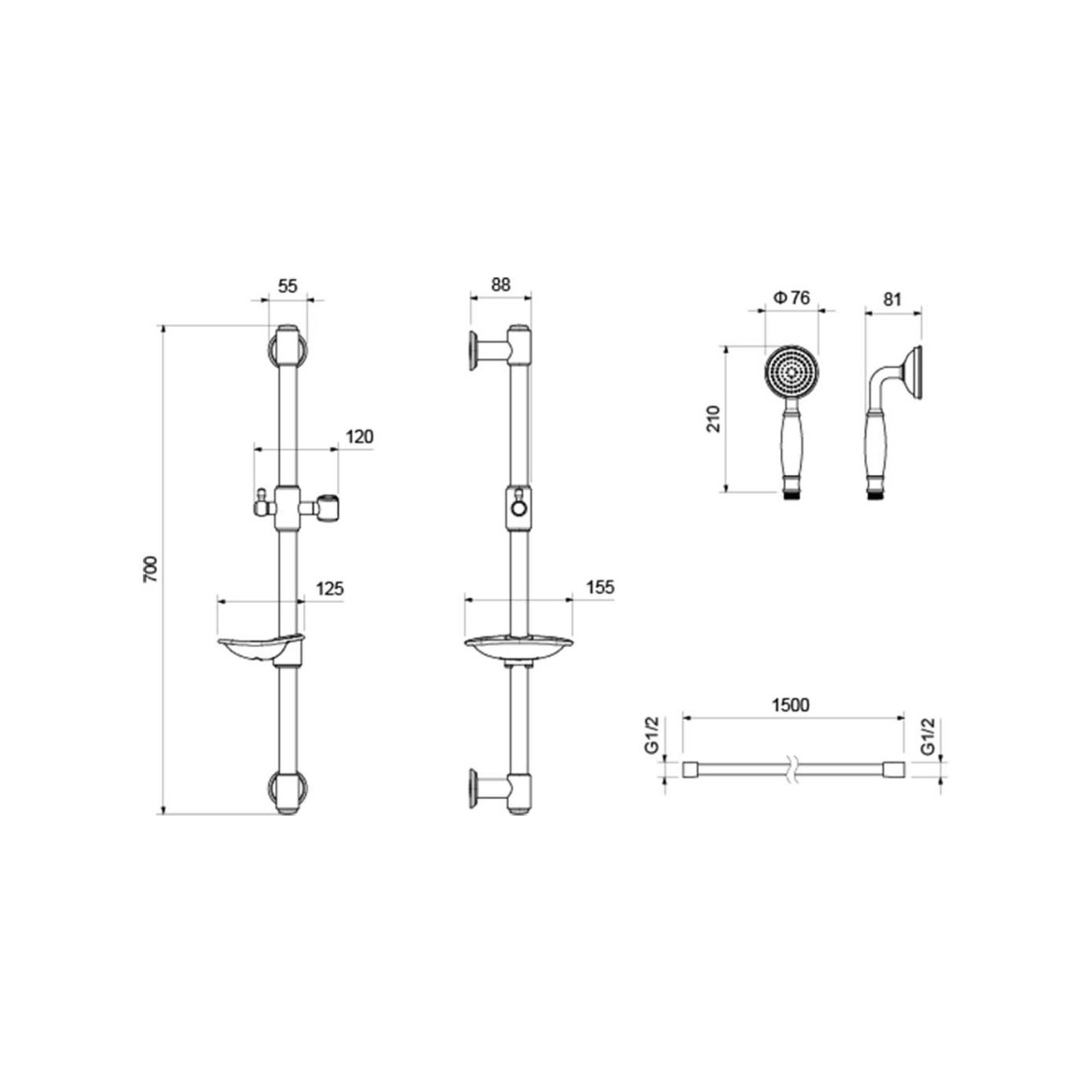 Душевой гарнитур AQUATEK КЛАССИК, 1jet 65 см, матовый черный AQ2020MB