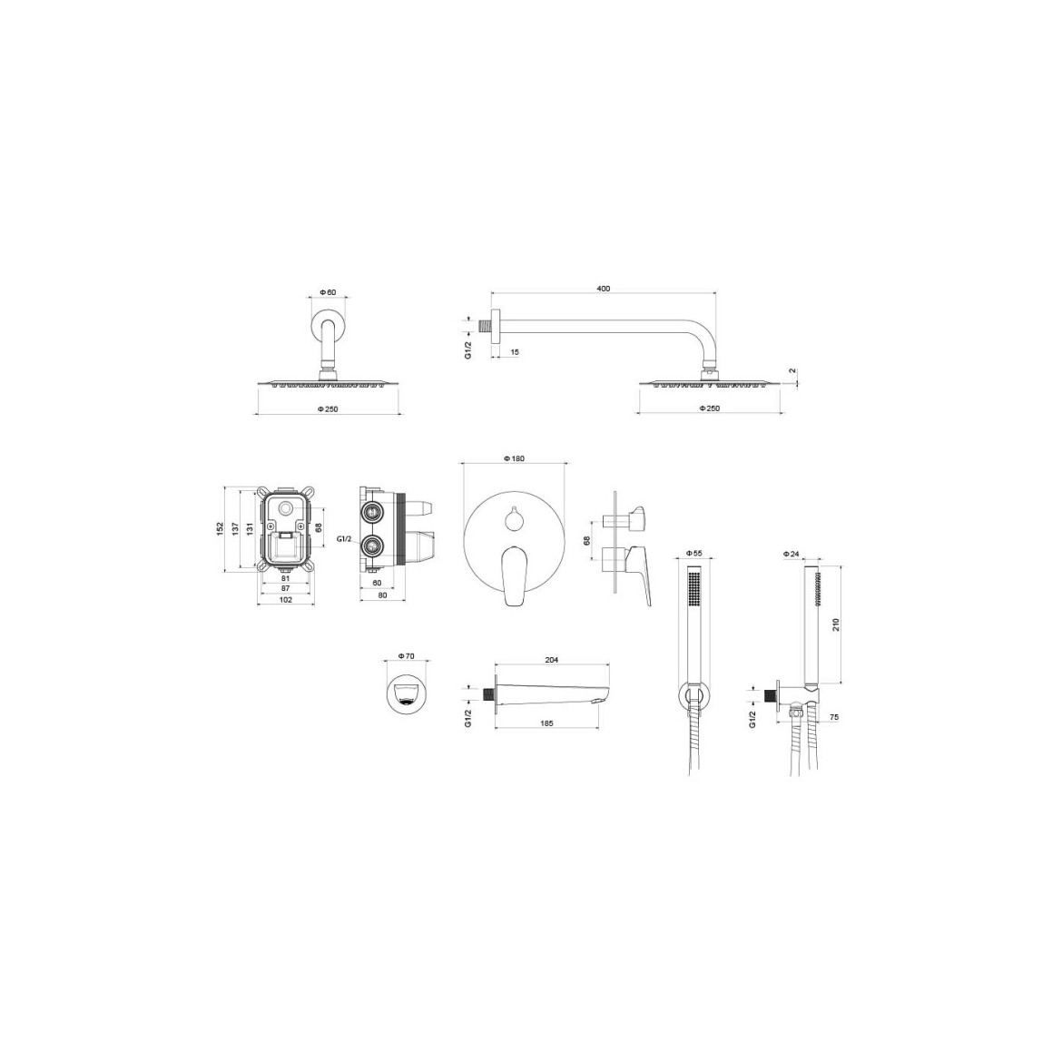Душевой комплект Set 4 в 1 AQUATEK БЕТТА, хром AQ1173CR