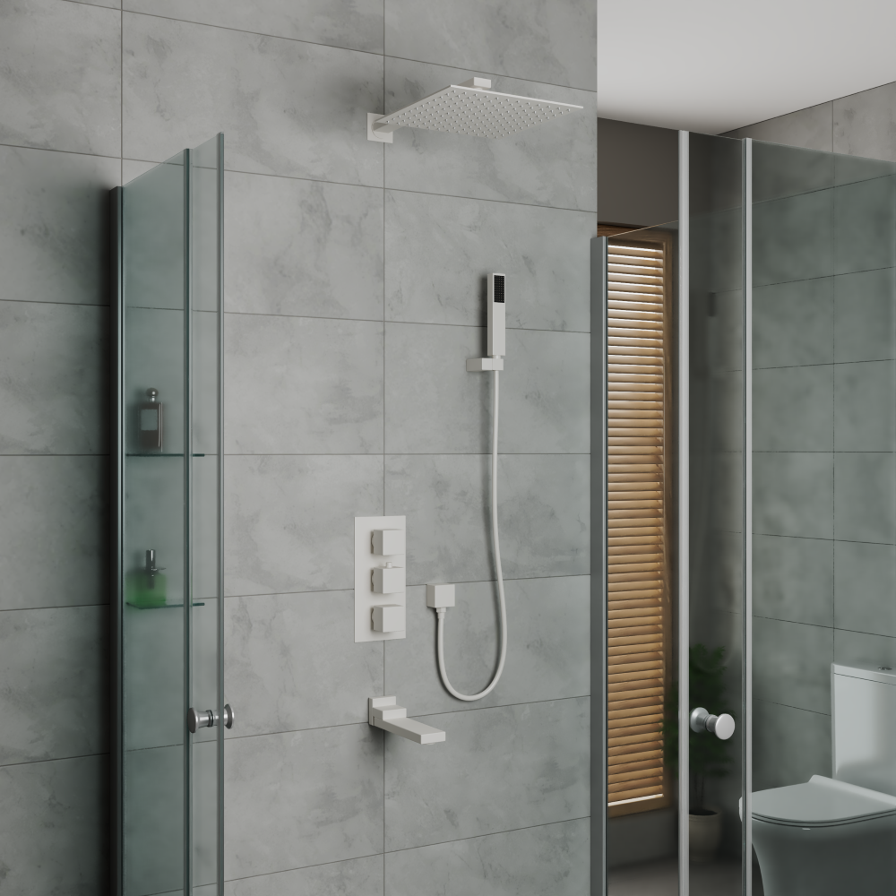 Душевая система для ванны и душа DK встраиваемая термостатический с изливом матовый белый Bayern.Liszt DA2515608A04