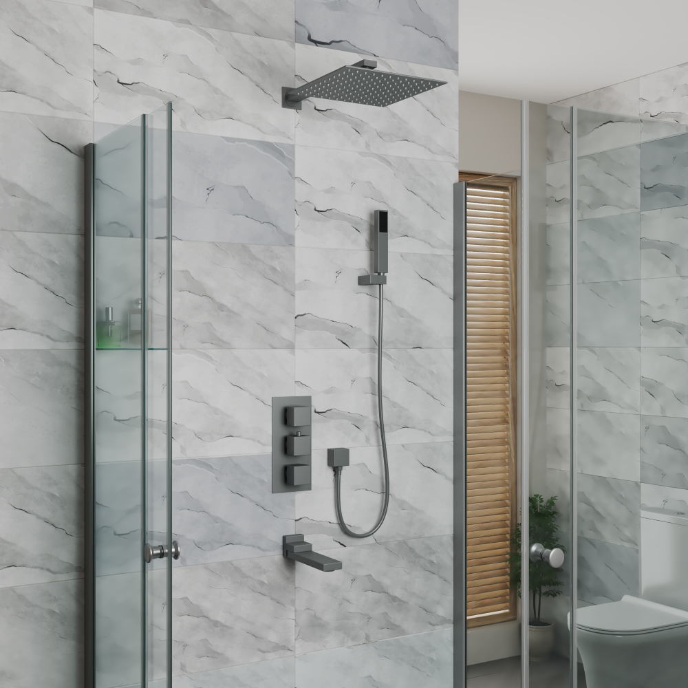 Душевая система для ванны и душа DK встраиваемая термостатический с изливом серый графит Bayern.Liszt (DA2515606A04)