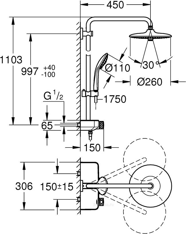 Комплект поставки:душ верхний (26455000 GROHE)